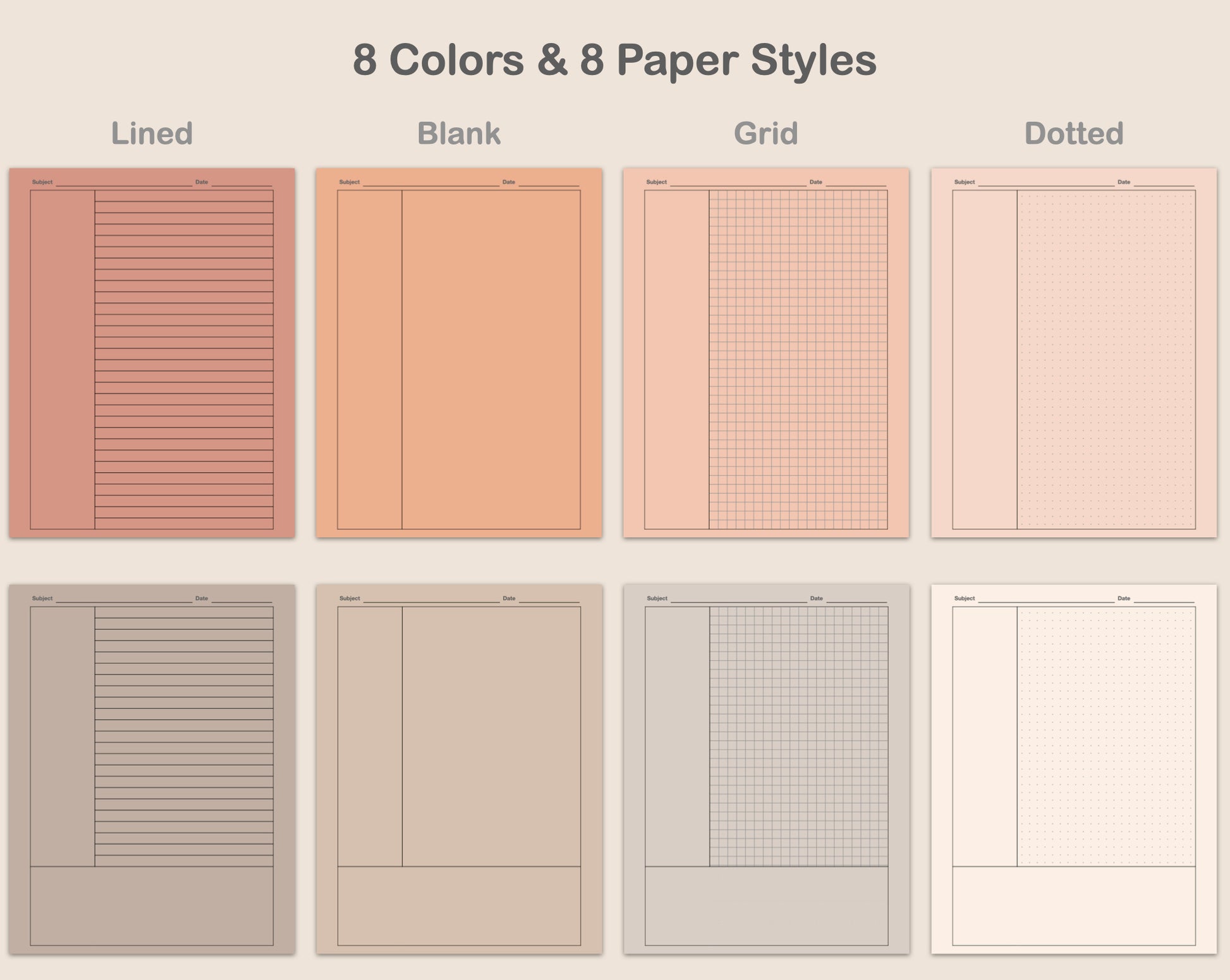 This Digital Cornell Notes templates in NEUTRAL theme is made for your planner, journal, and digital notebook. It is designed for pdf-annotating apps like Goodnotes 5, Noteshelf, Notability, Xodo, and others.