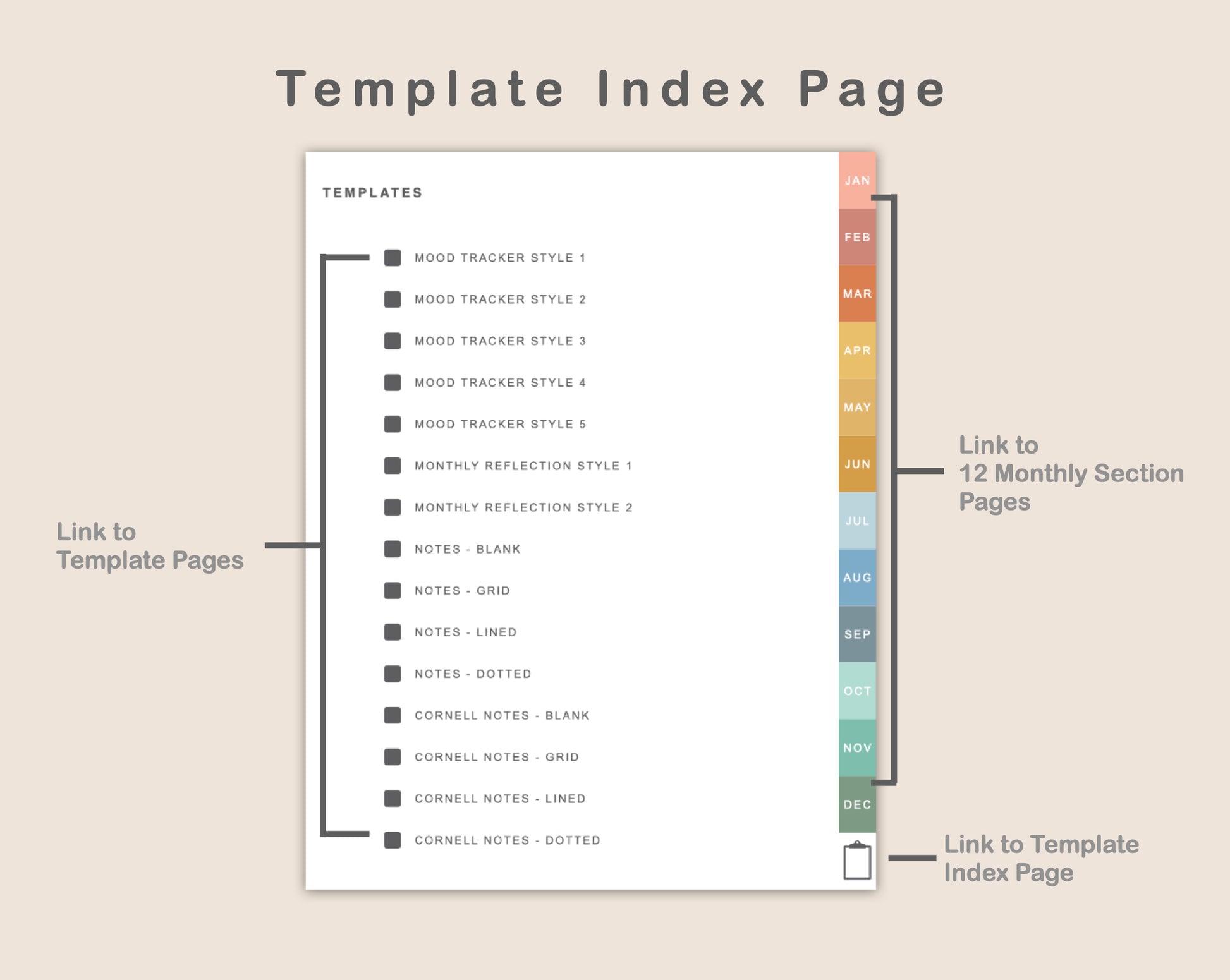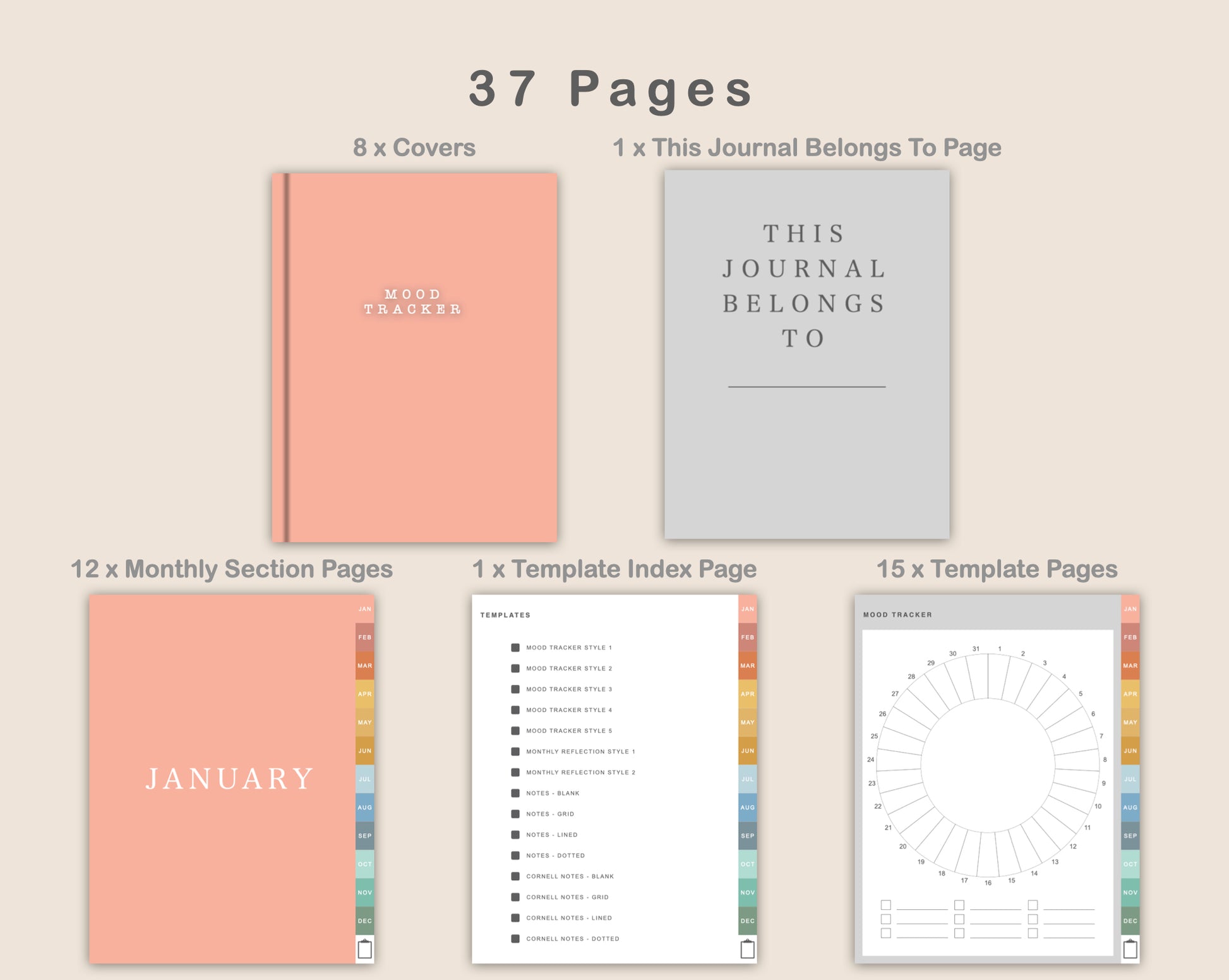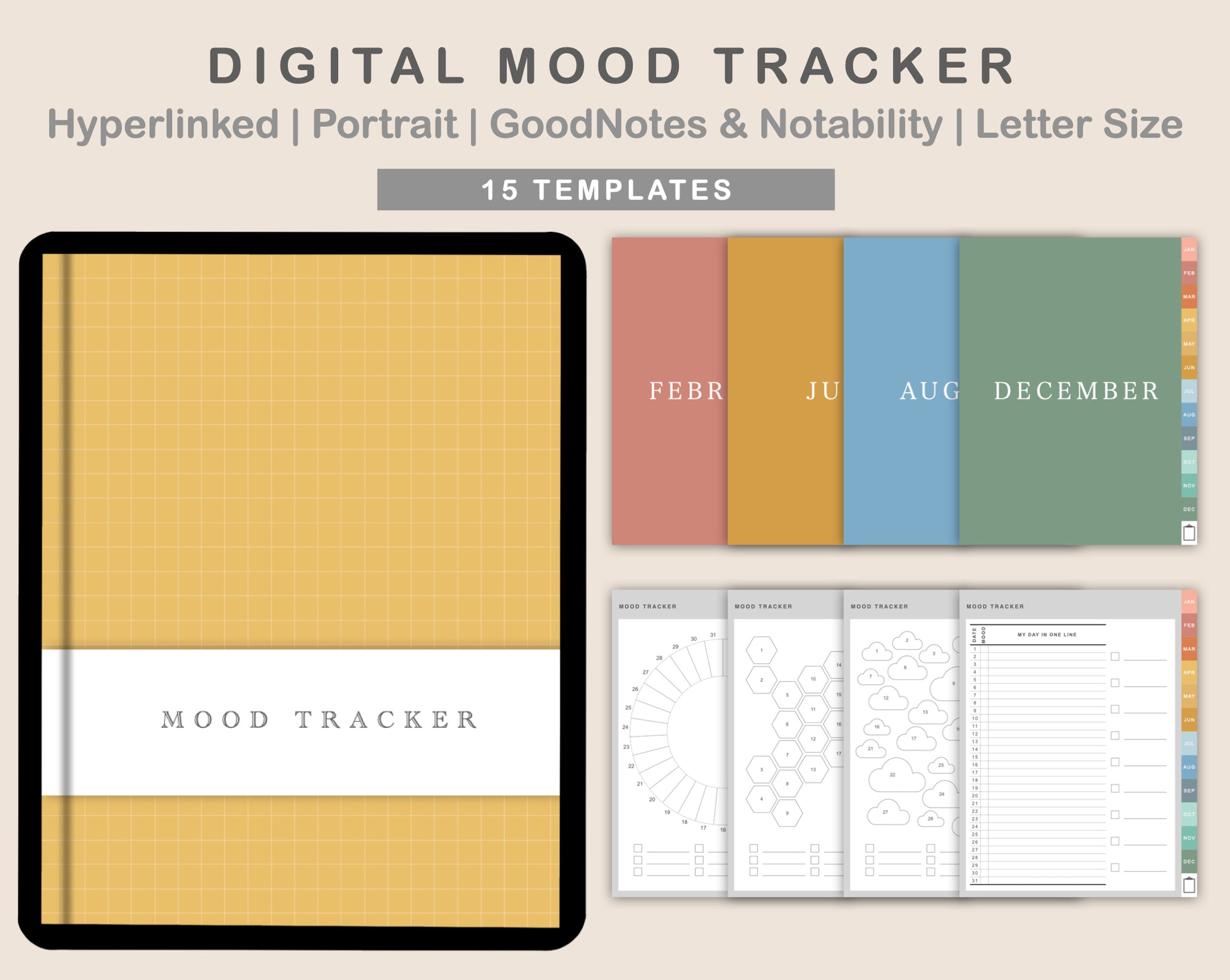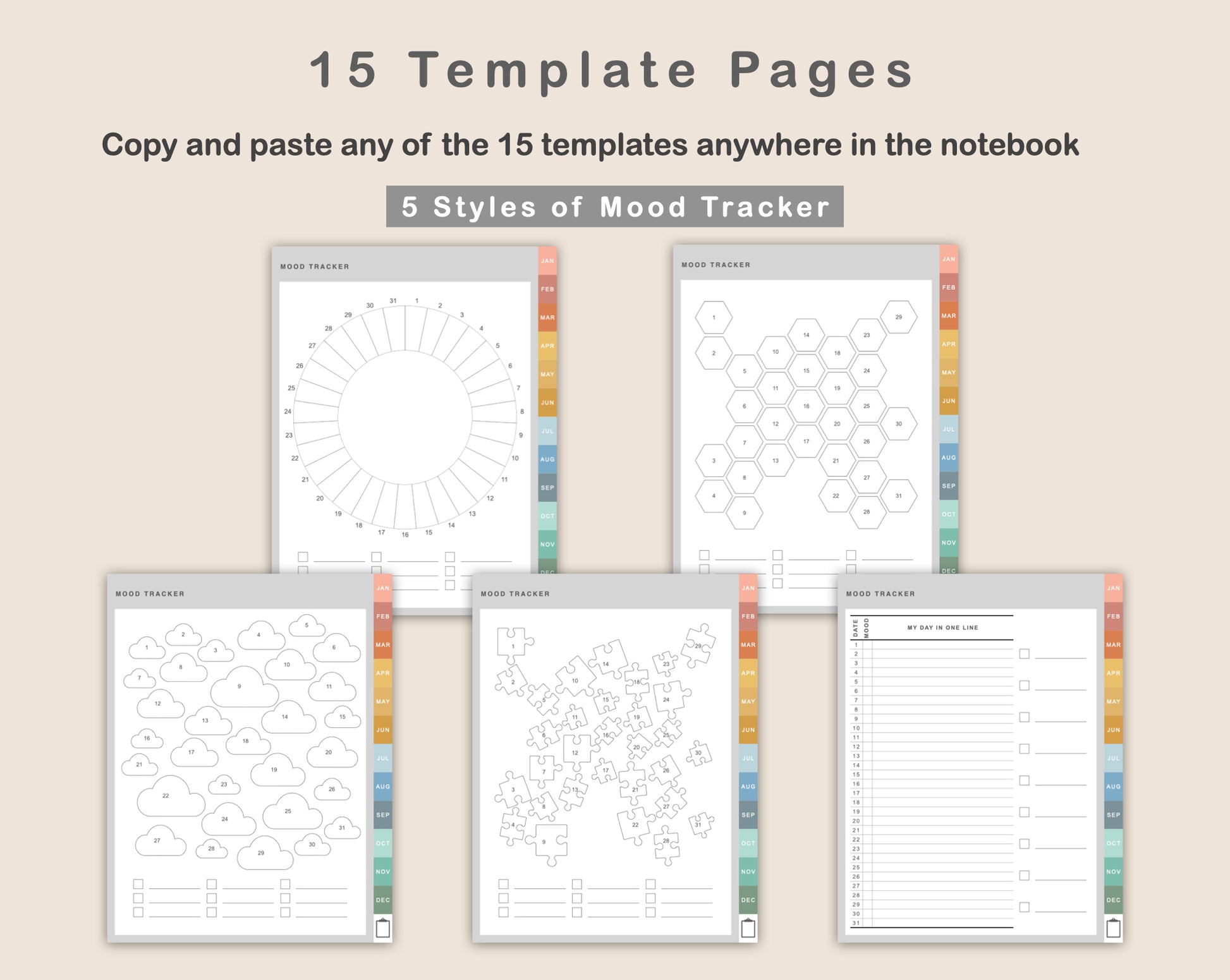 This Digital Mood Tracker is made in BOHO theme to help you keep track of your mood/ emotion. It is designed in portrait orientation (Vertical) for pdf-annotating apps like Goodnotes 5, Noteshelf, Notability, Xodo, and others.