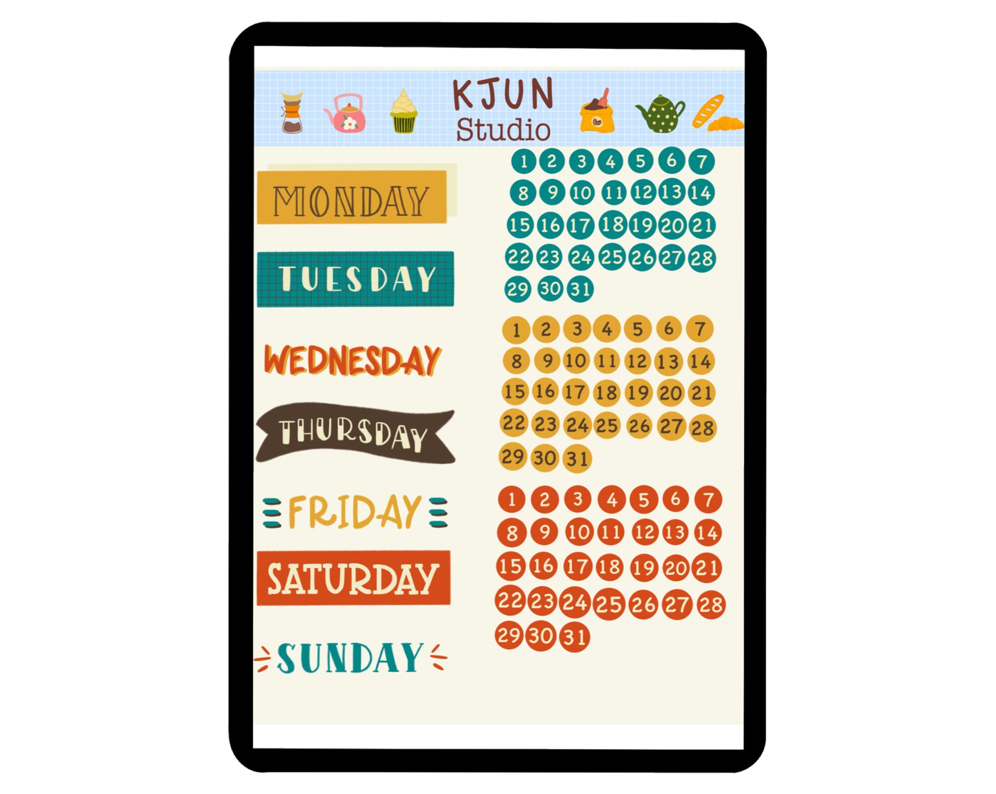 Digital Sticker - Days of the week and Date in Vintage theme