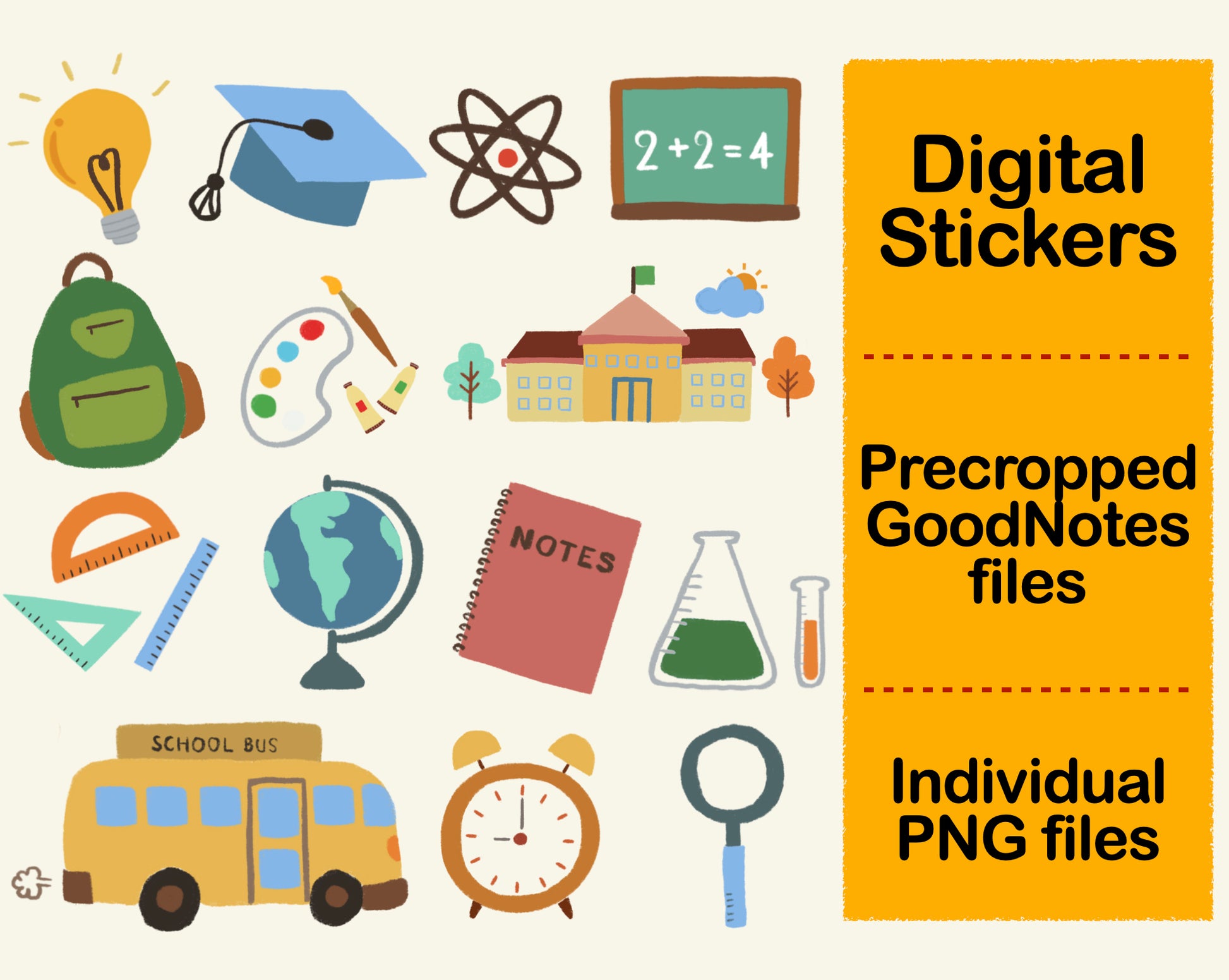 • Digital stickers in pdf-annotating apps like Goodnotes 5, Noteshelf, Notability, Xodo, and others.