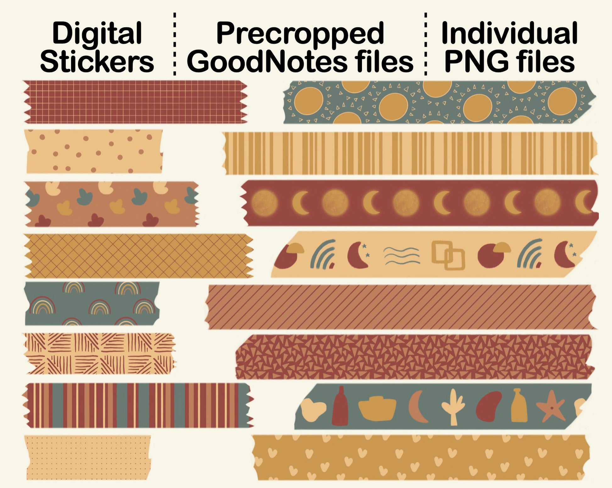 All Washi Tape Stickers are in Boho Color in the following patterns