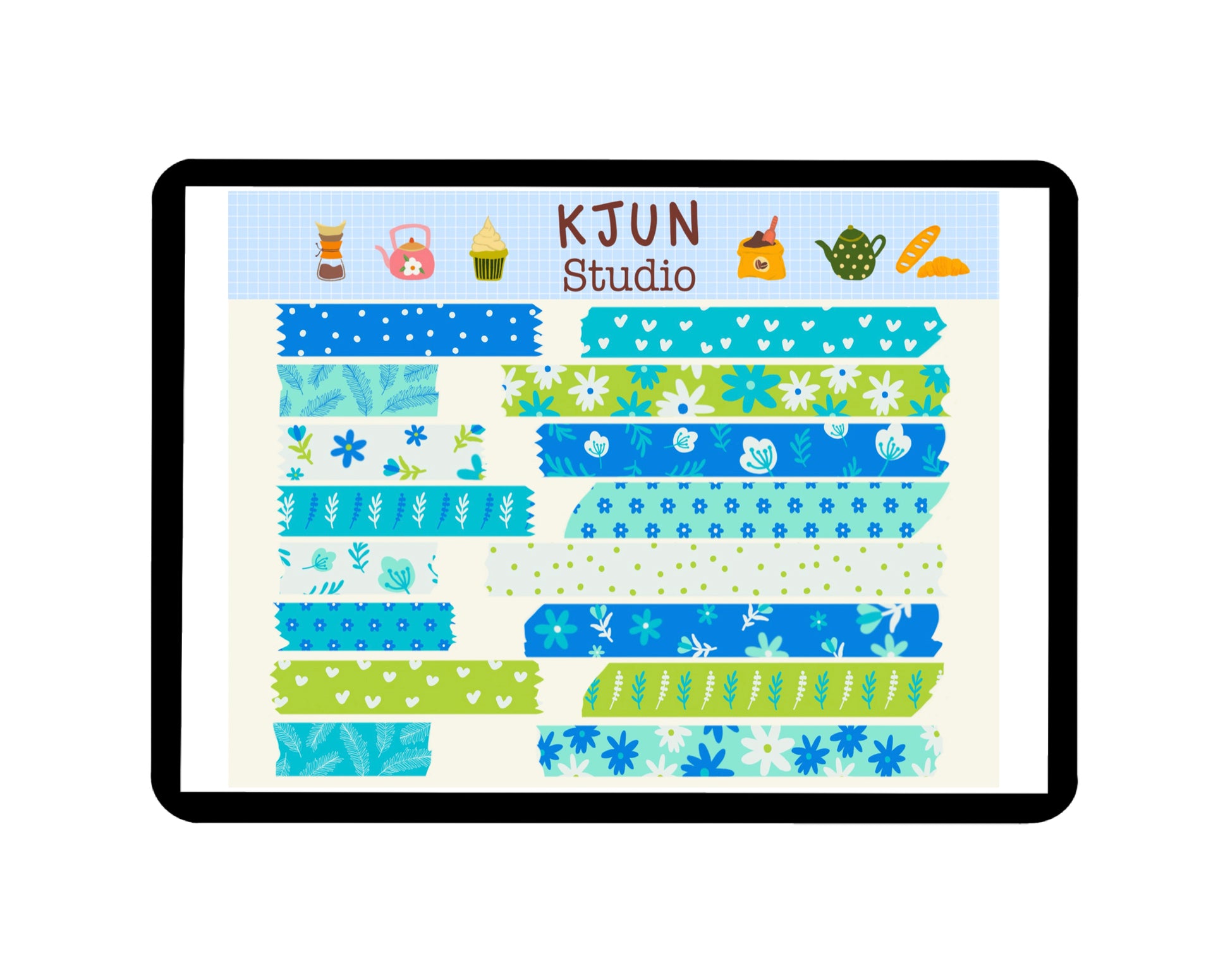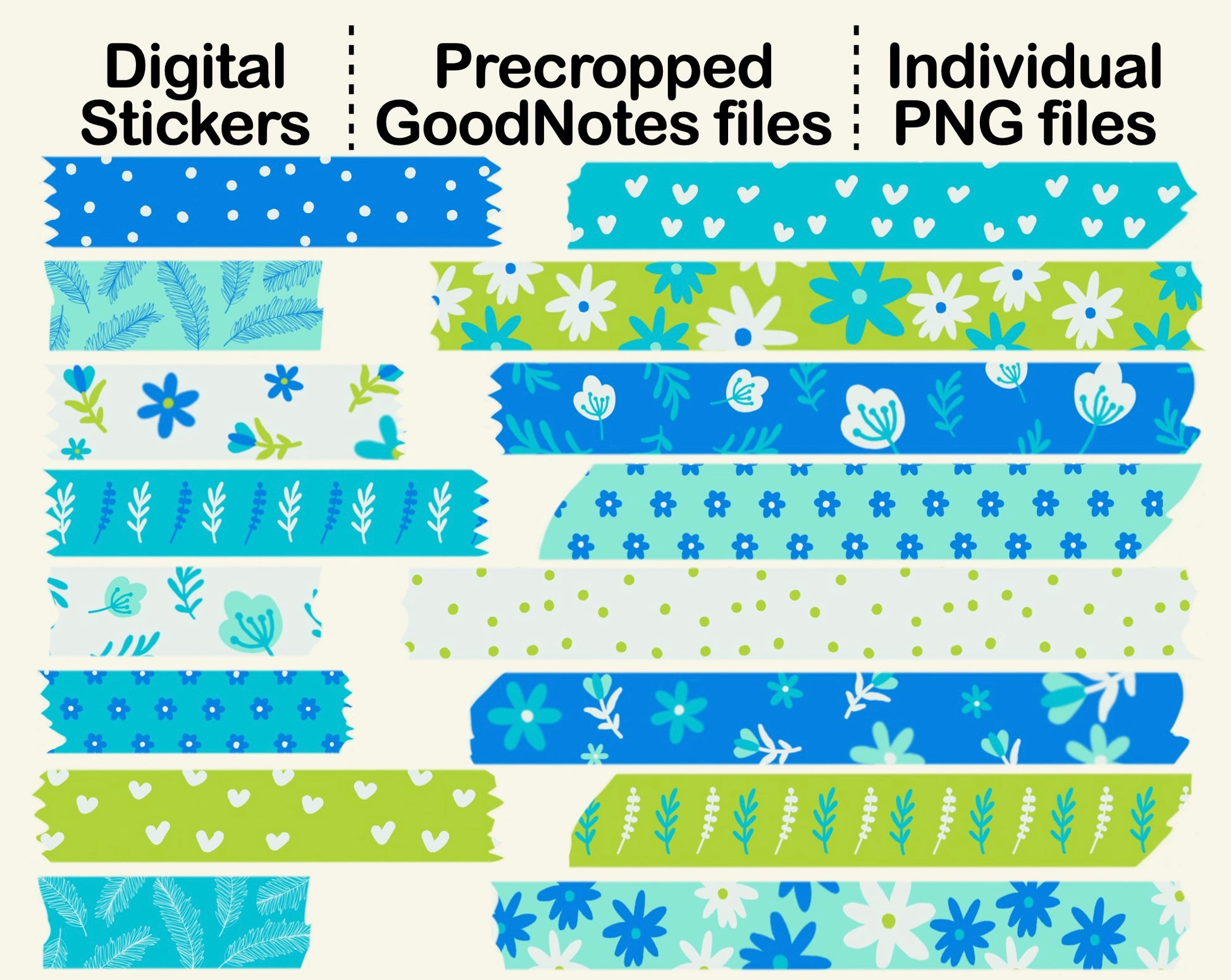 All Washi Tape Stickers are in Green and Blue Color in the following patterns