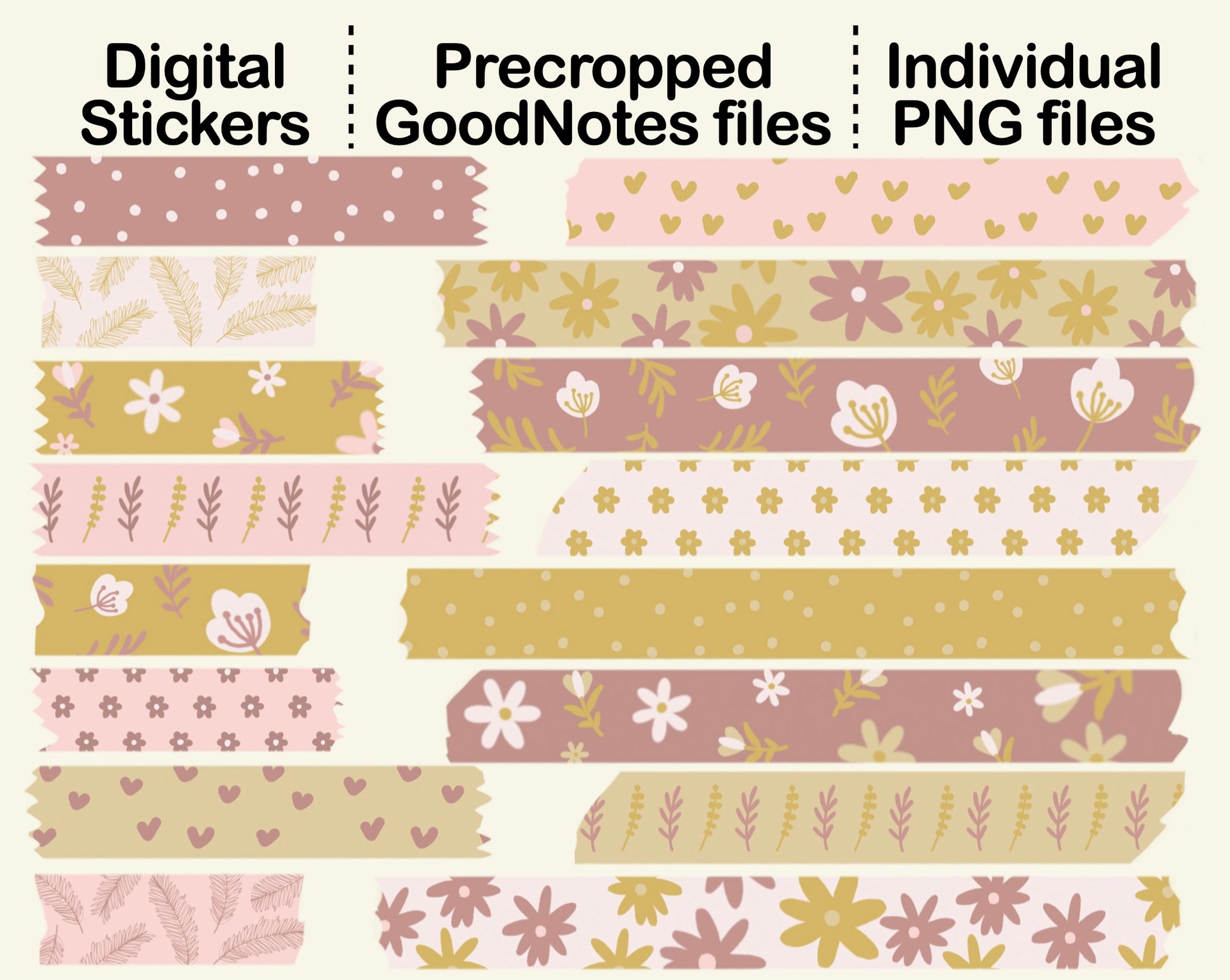 This Digital Washi Tape Sticker in GOLD PINK Floral theme set is made for decorating your planner, bullet journal, scrapbook, and more. You can use these illustrations as