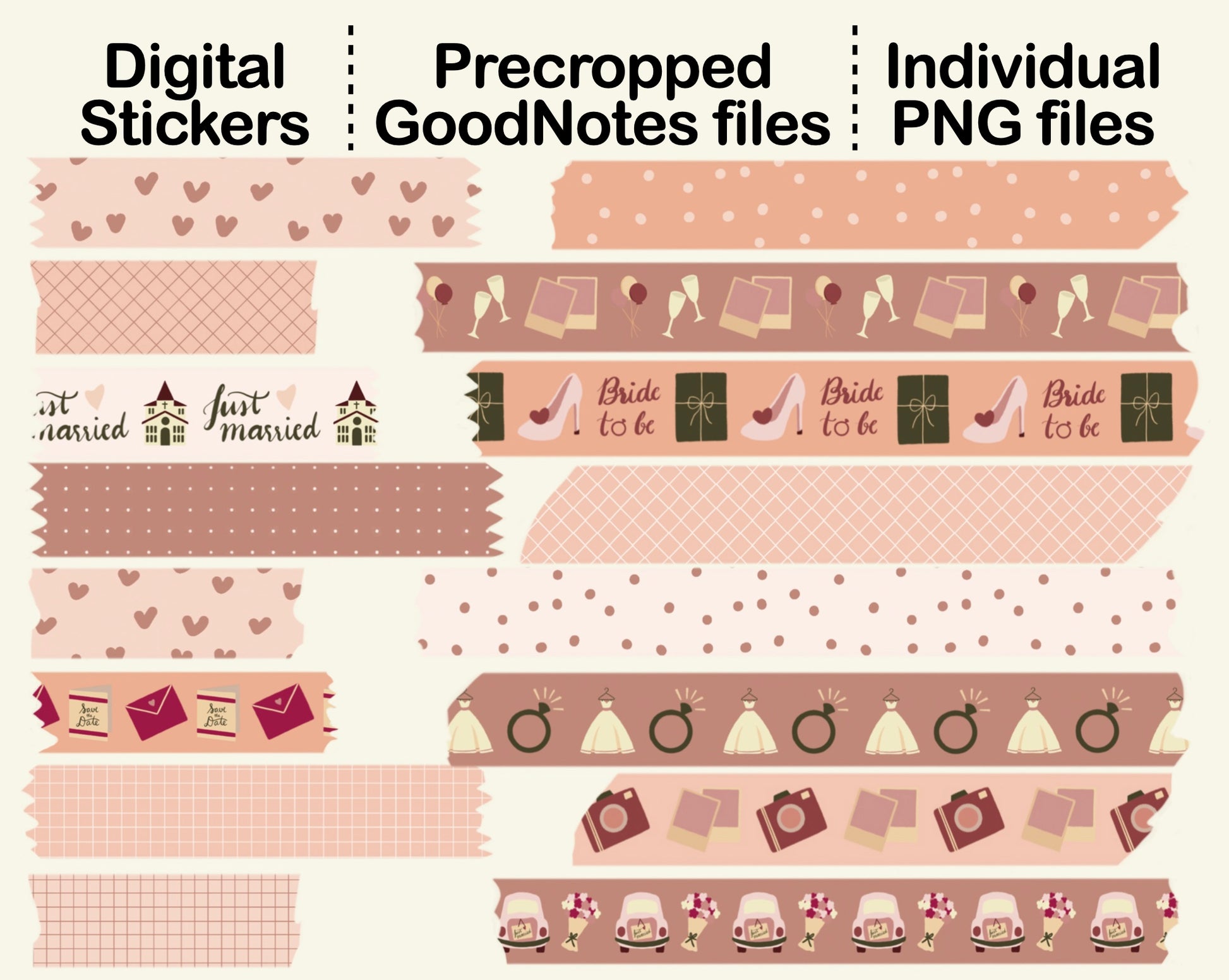 This Digital Washi Tape Sticker in NEUTRAL WEDDING theme set is made for decorating your planner, bullet journal, scrapbook, and more. You can use these illustrations as