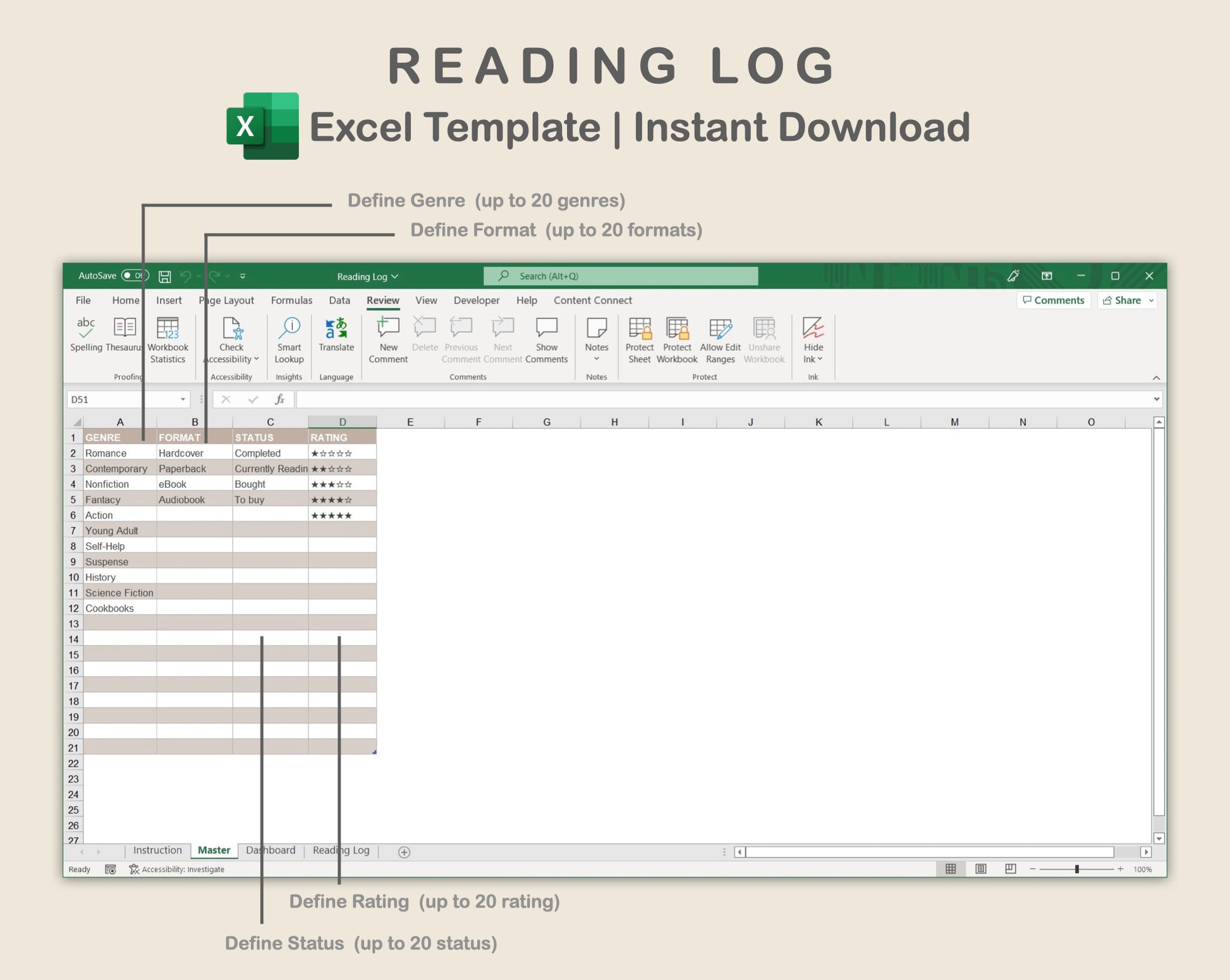This Reading Log Spreadsheet for Excel is made in NEUTRAL theme in order to help you plan and keep track of your reading.