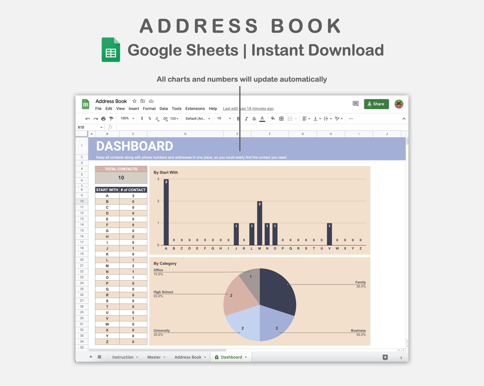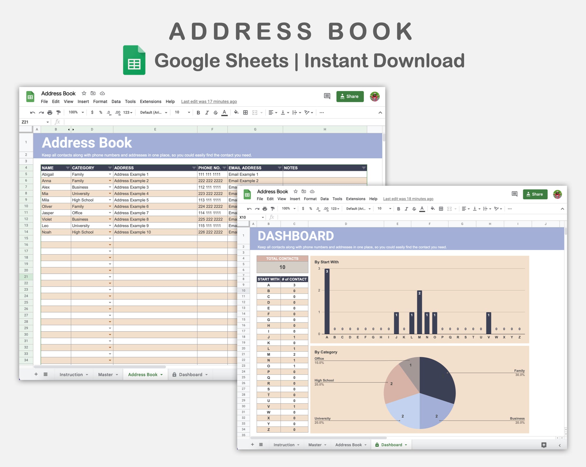 This Address Book Template for Google Sheets is made in SWEET theme in order to help you keep all contacts along with phone numbers and addresses in one place, so you could easily find the contact you need.