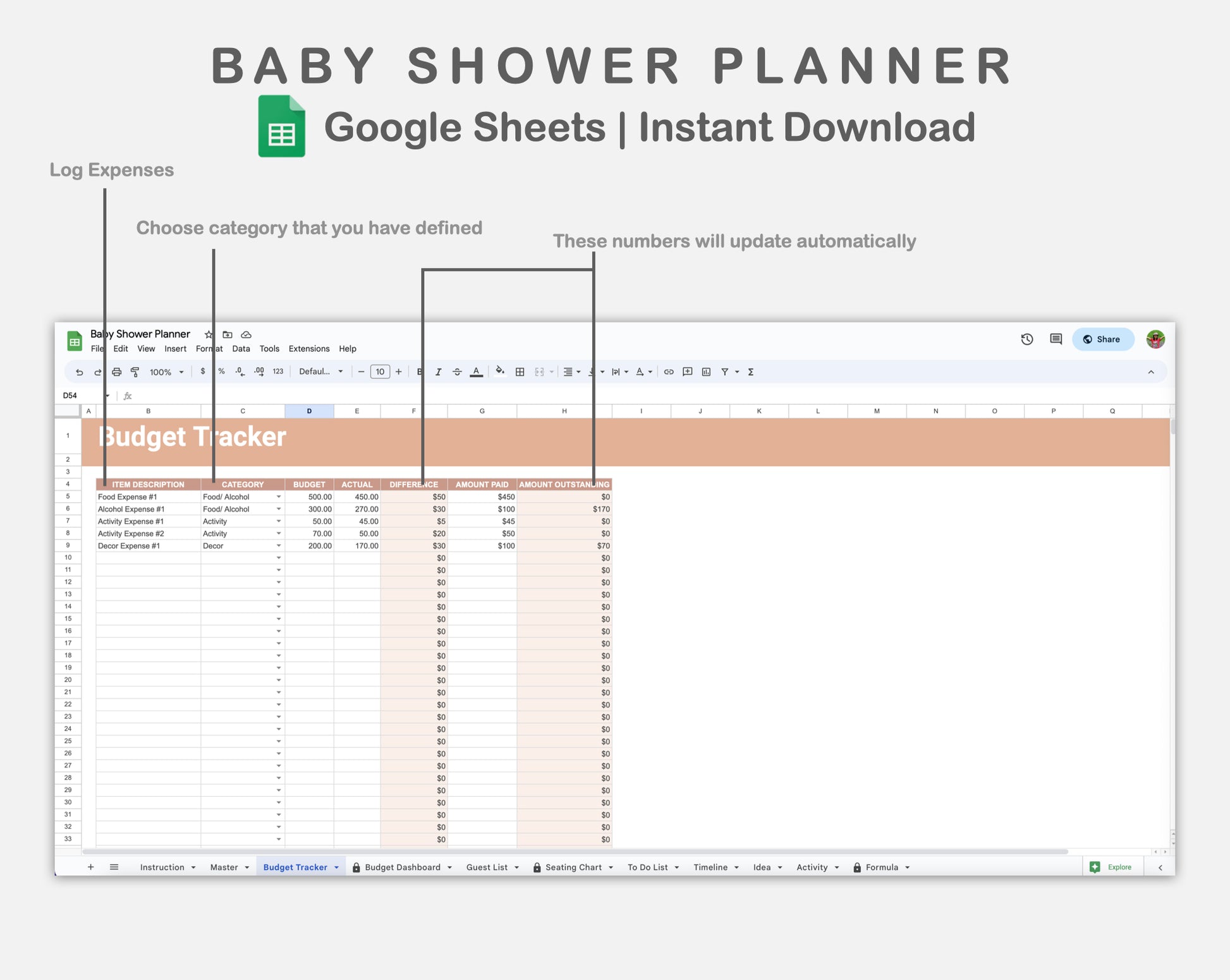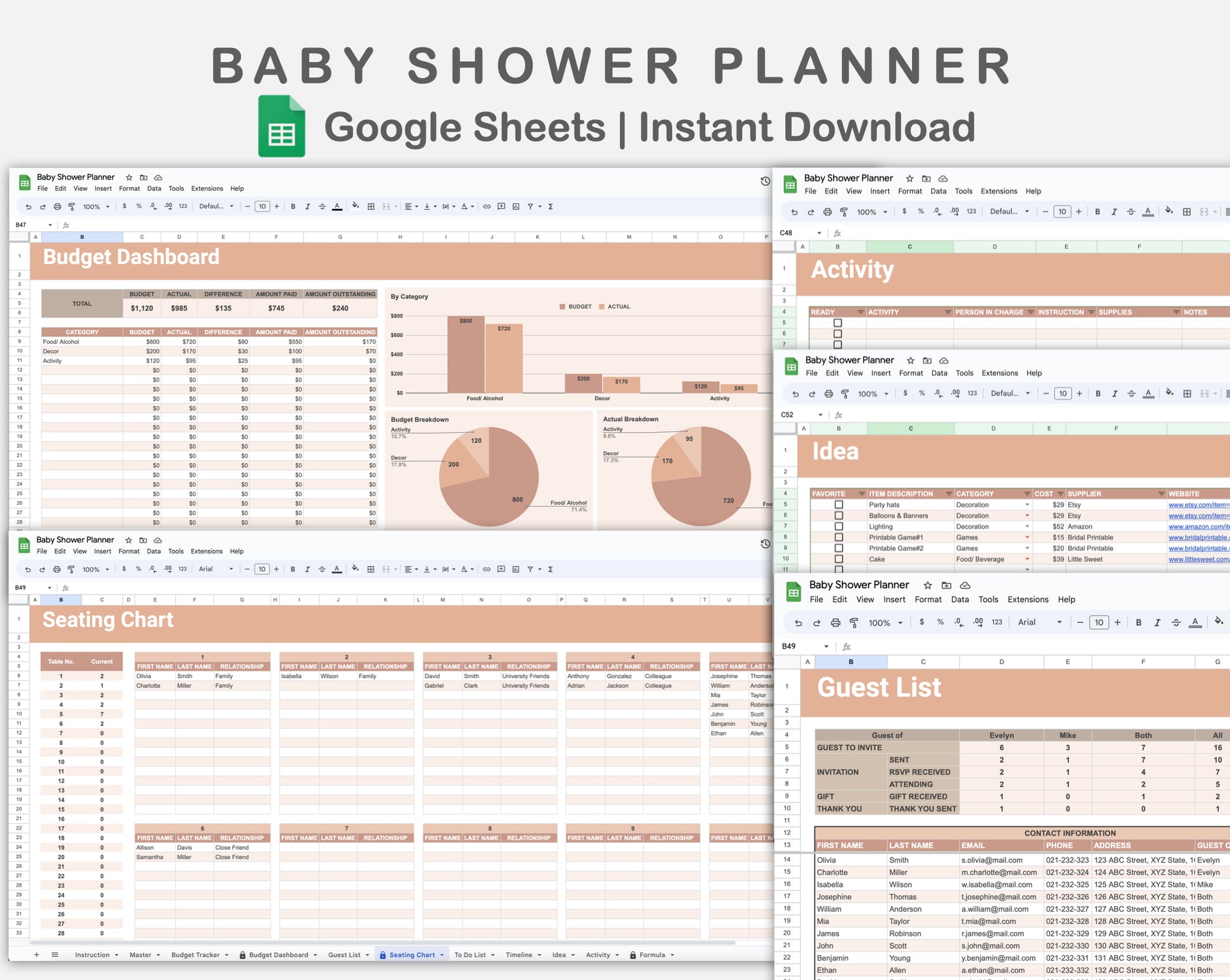 Google Sheets - Baby Shower Planner - Neutral
