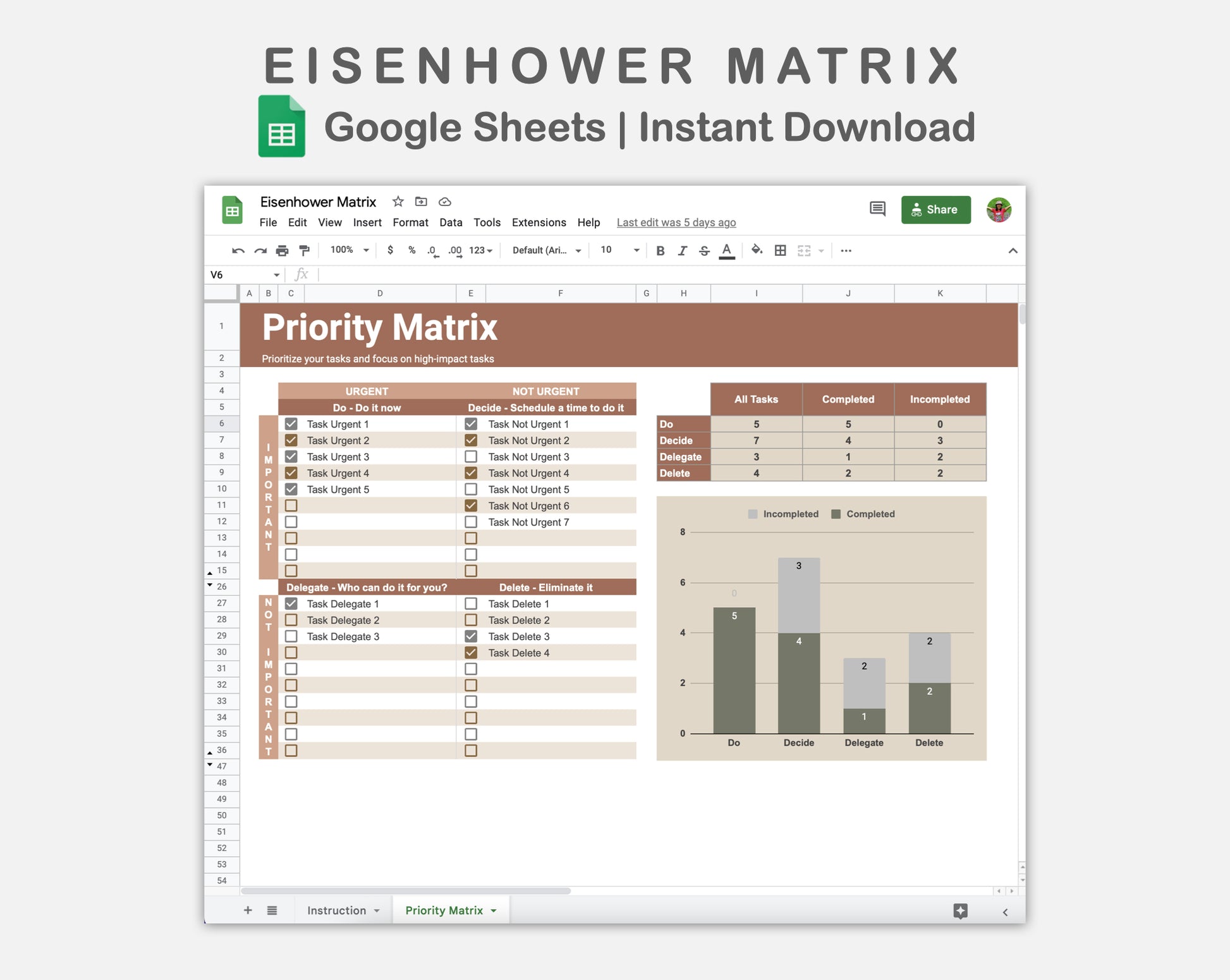 This Eisenhower Matrix Spreadsheet for Google Sheets is made in EARTHY theme in order to help you prioritize your tasks.