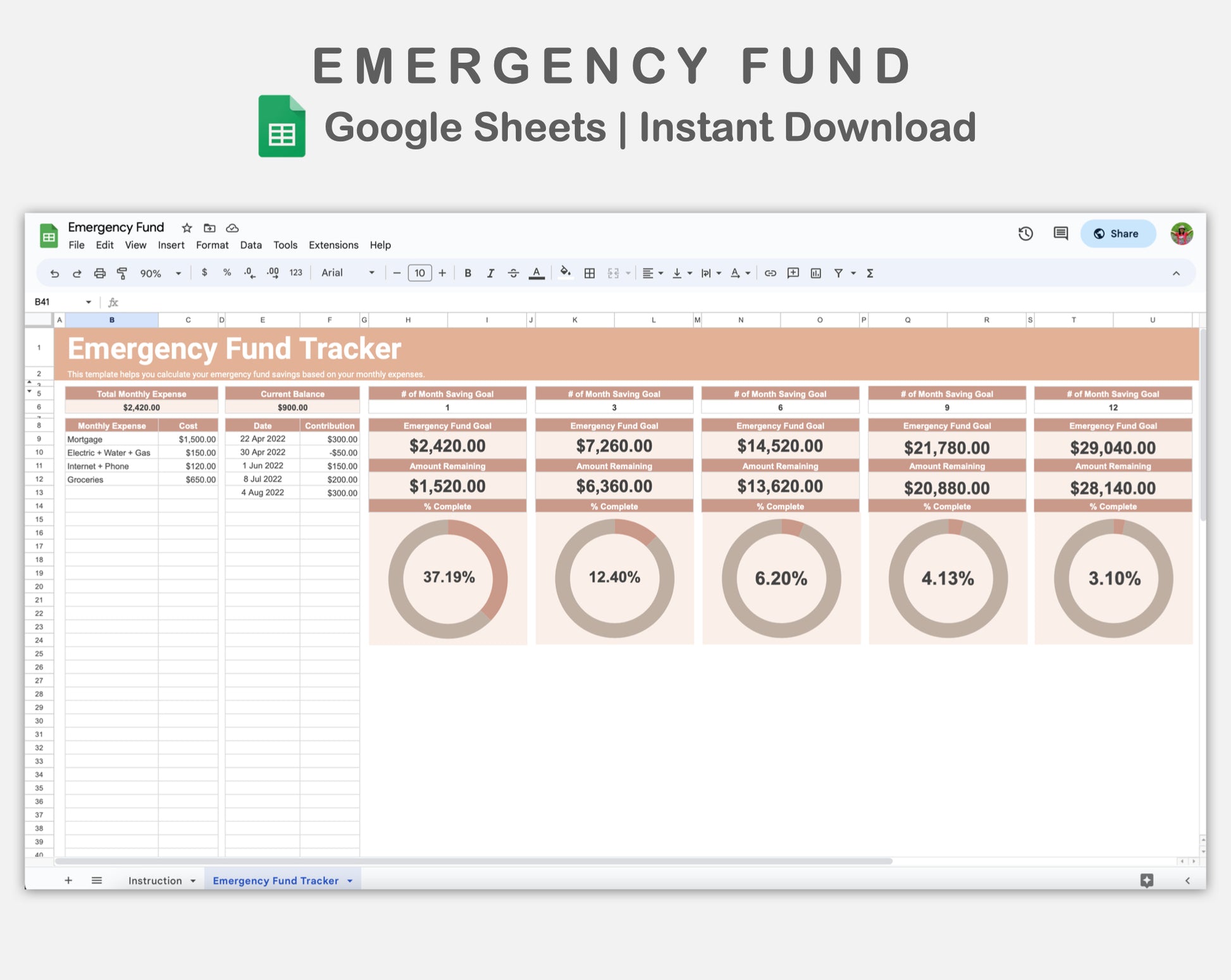 This Emergency Fund Tracker Spreadsheet for Google Sheets is made in NEUTRAL theme in order to help you calculate your emergency fund savings based on your monthly expenses.