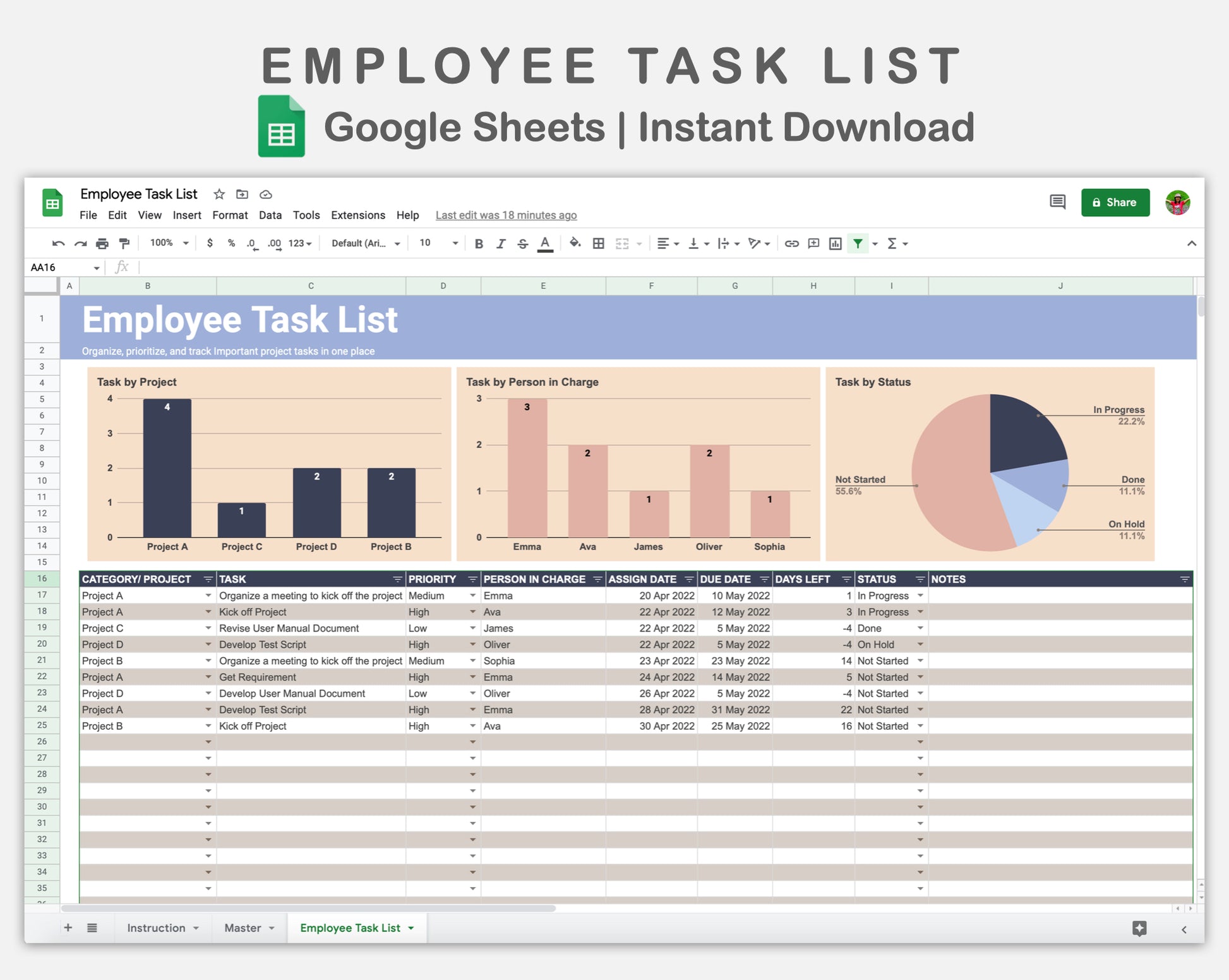 Google Sheets - Employee Task List - Sweet