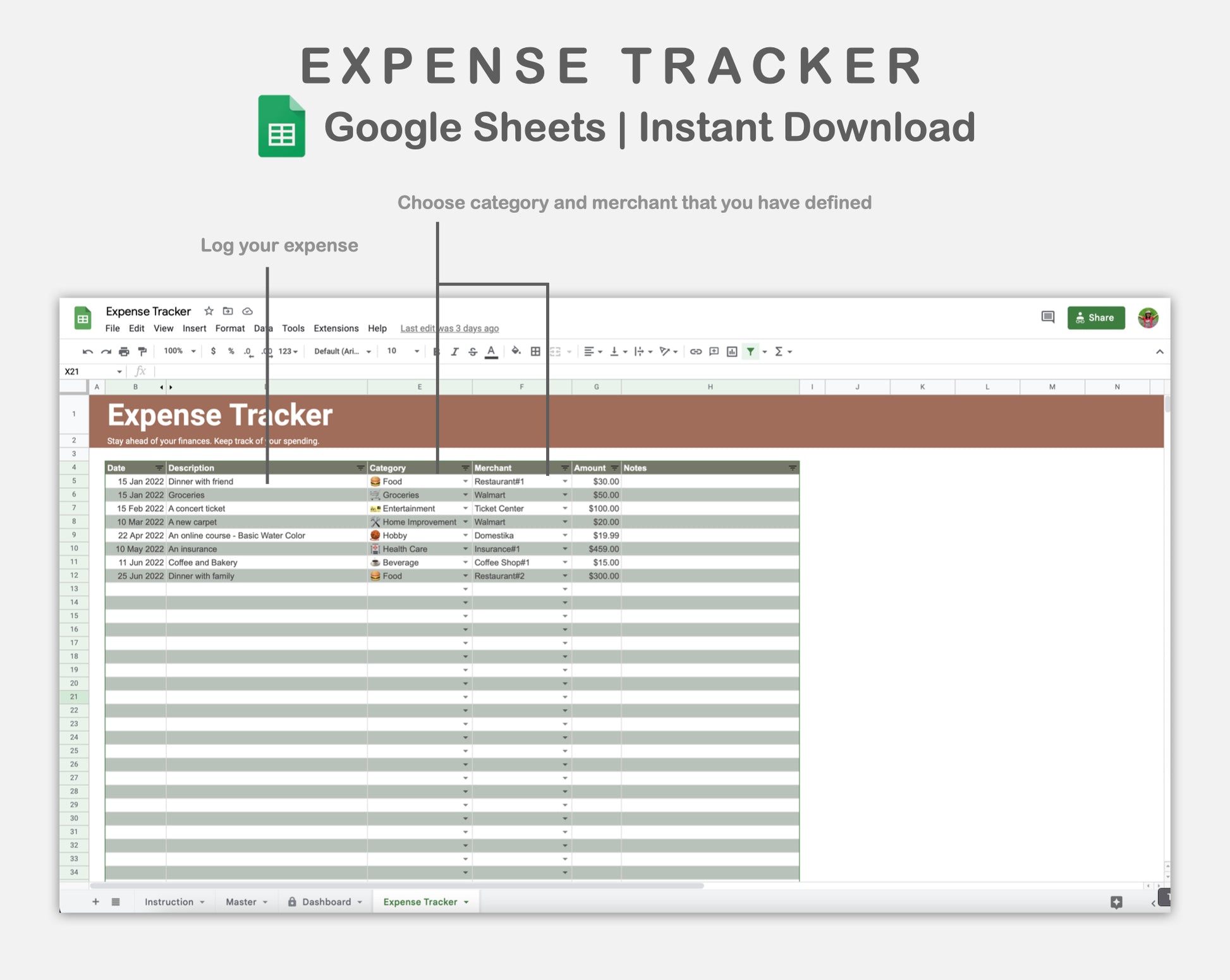 This Expense Tracker Spreadsheet for Google Sheets is made in EARTHY theme in order to help you keep track of your spending and stay ahead of your finances.