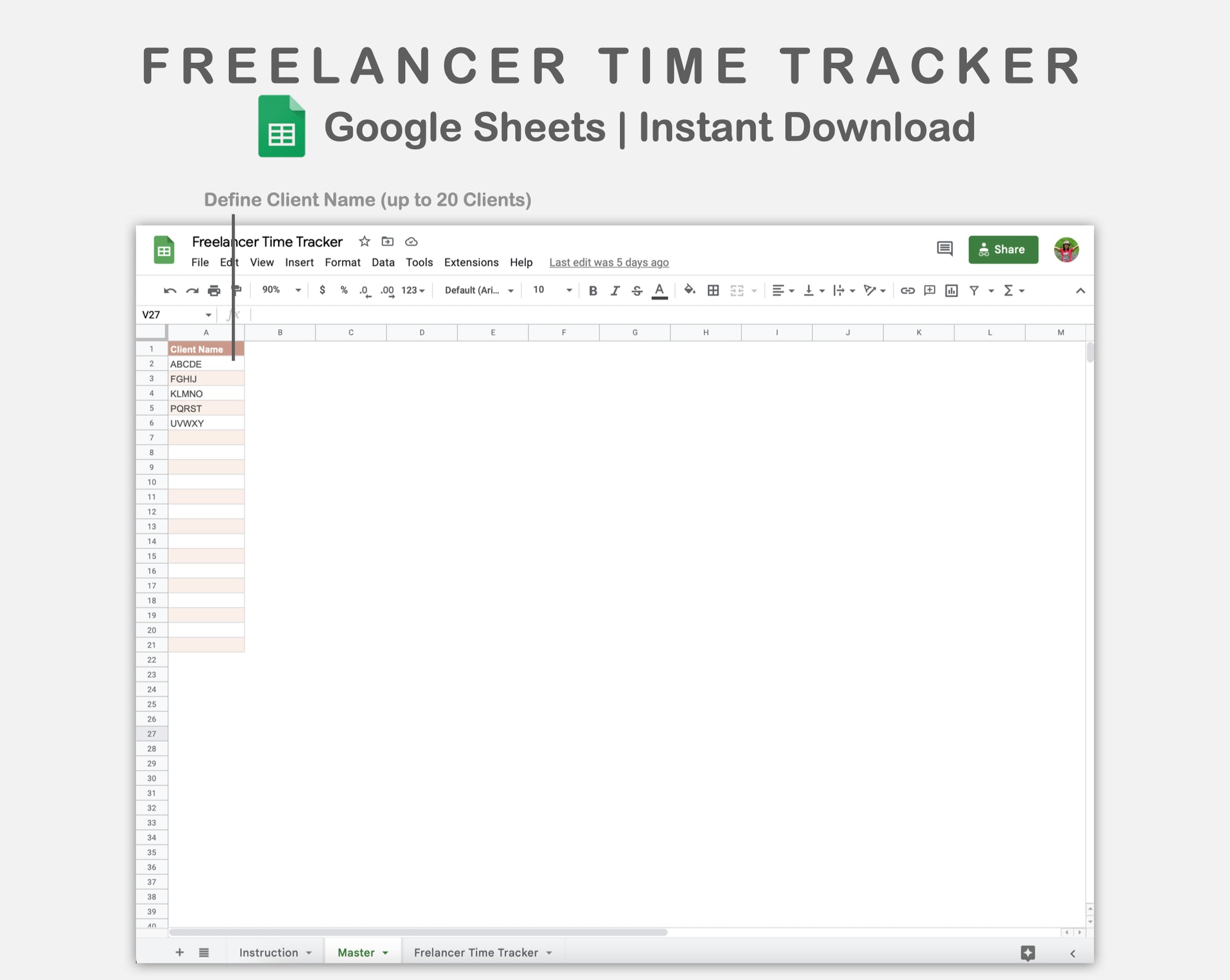 This Freelancer Time Tracker Spreadsheet for Google Sheets is made in NEUTRAL theme in order to help you track your time spent for each client.