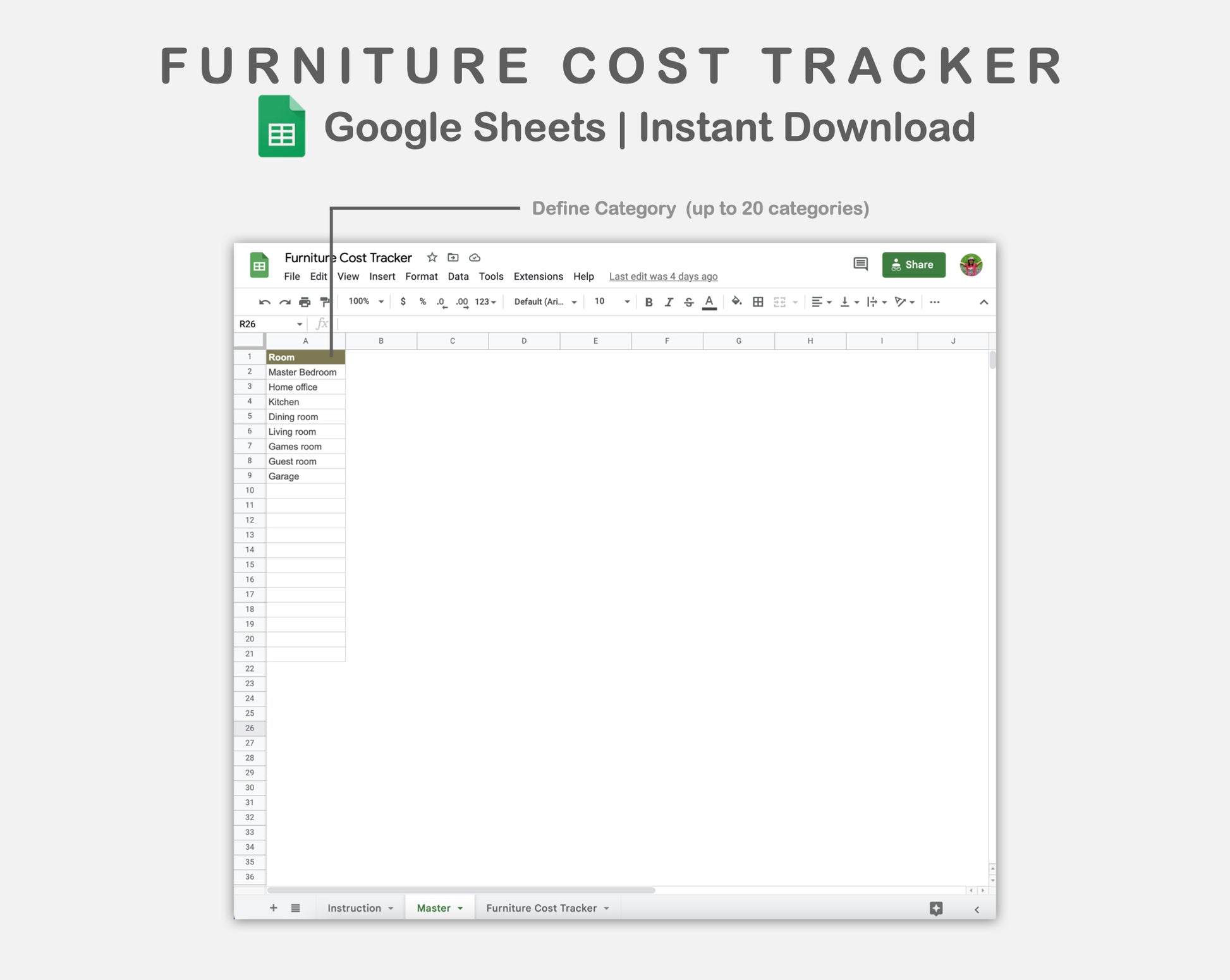 This Furniture Cost Tracker Spreadsheet for Google Sheets is made in BOHO theme in order to help you keep track of your furnishing each room and stay on a budget.