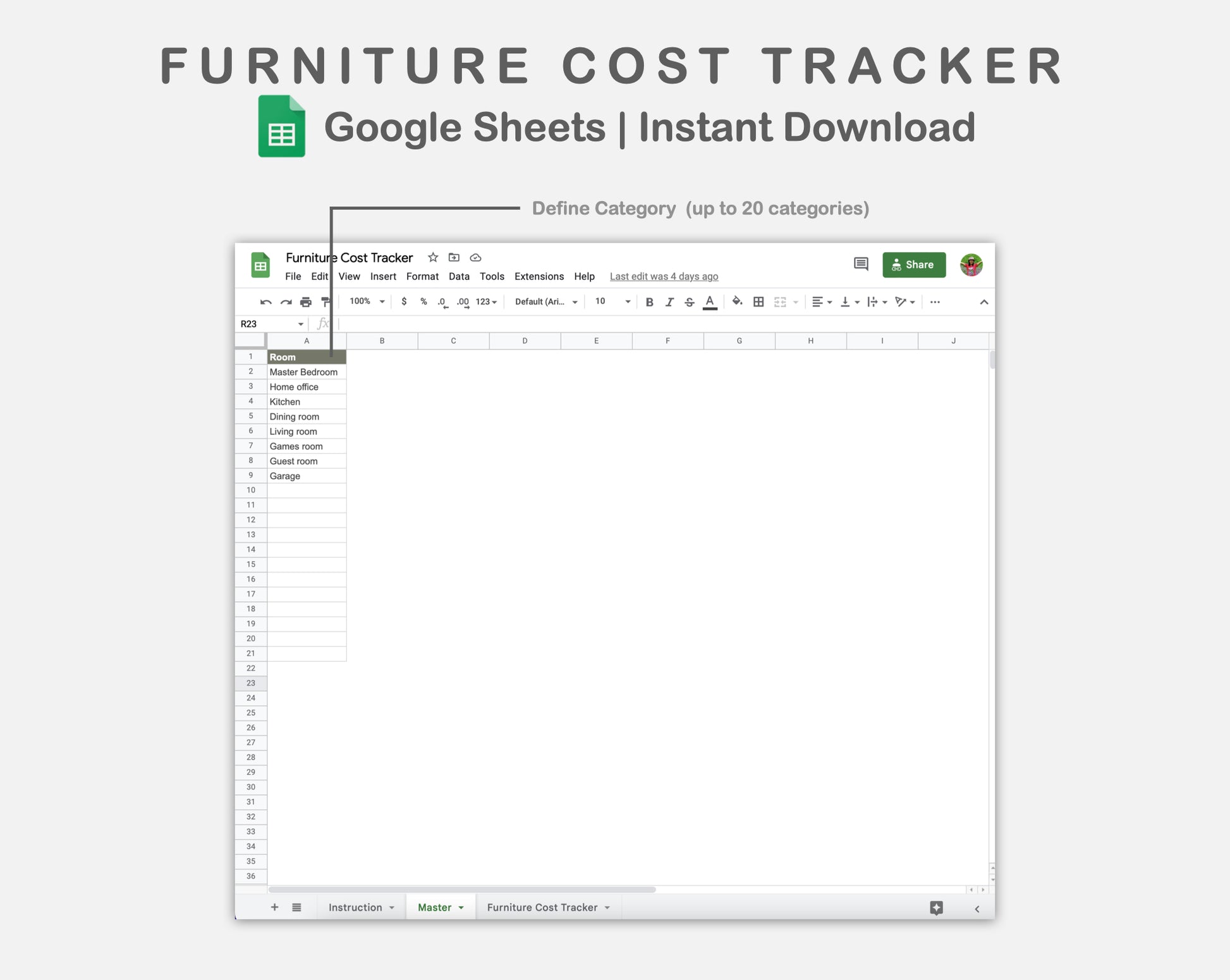 This Furniture Cost Tracker Spreadsheet for Google Sheets is made in EARTHY theme in order to help you keep track of your furnishing each room and stay on a budget.
