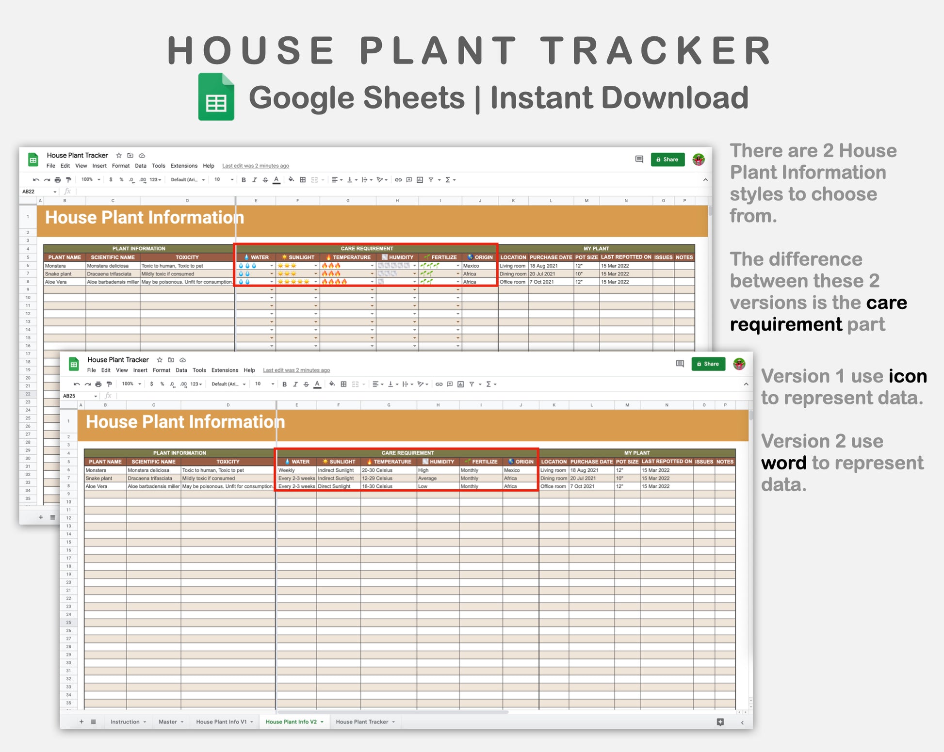 This House Plant Care Spreadsheet for Google Sheets is made in BOHO theme in order to help you plan, record, and grow your plant.