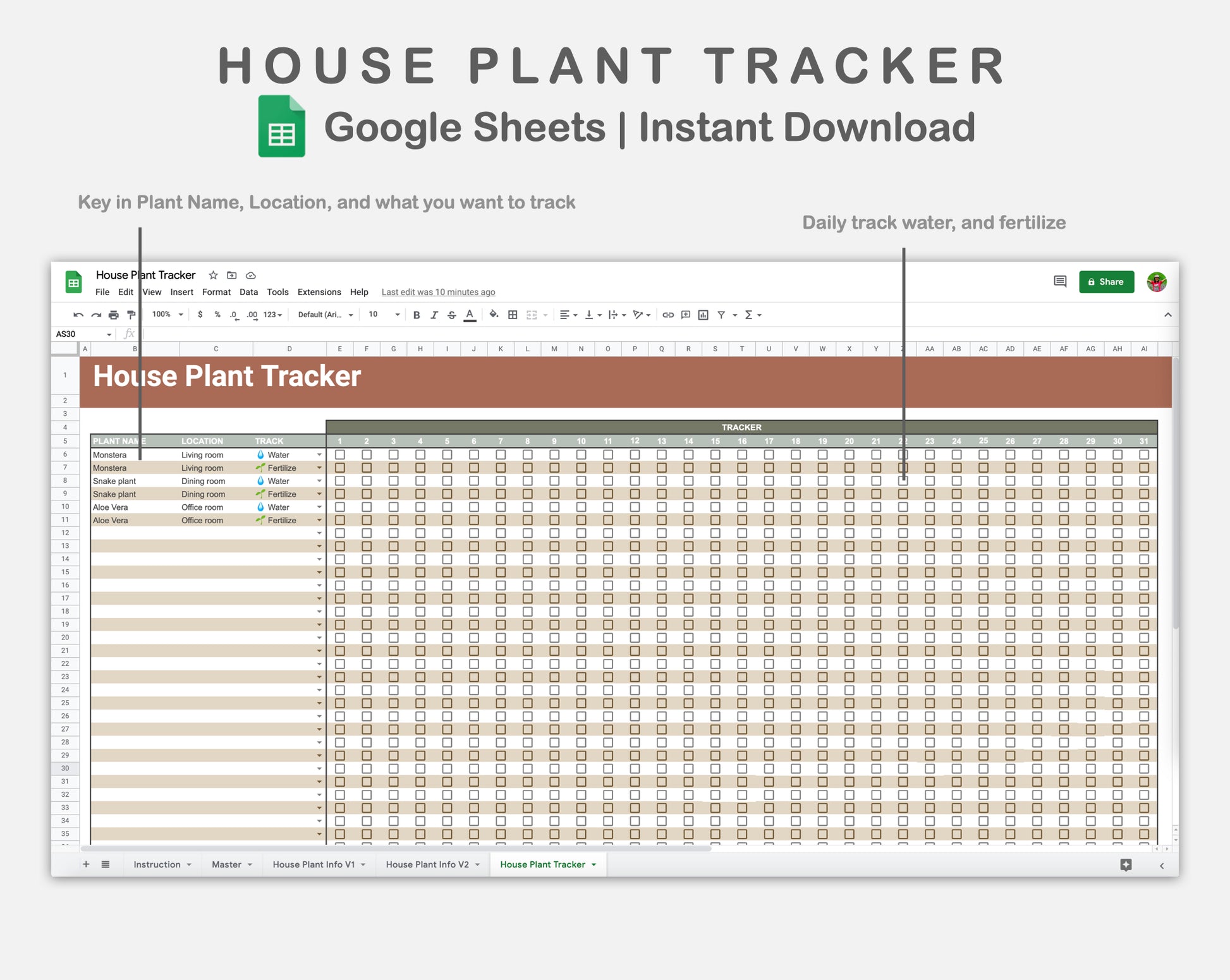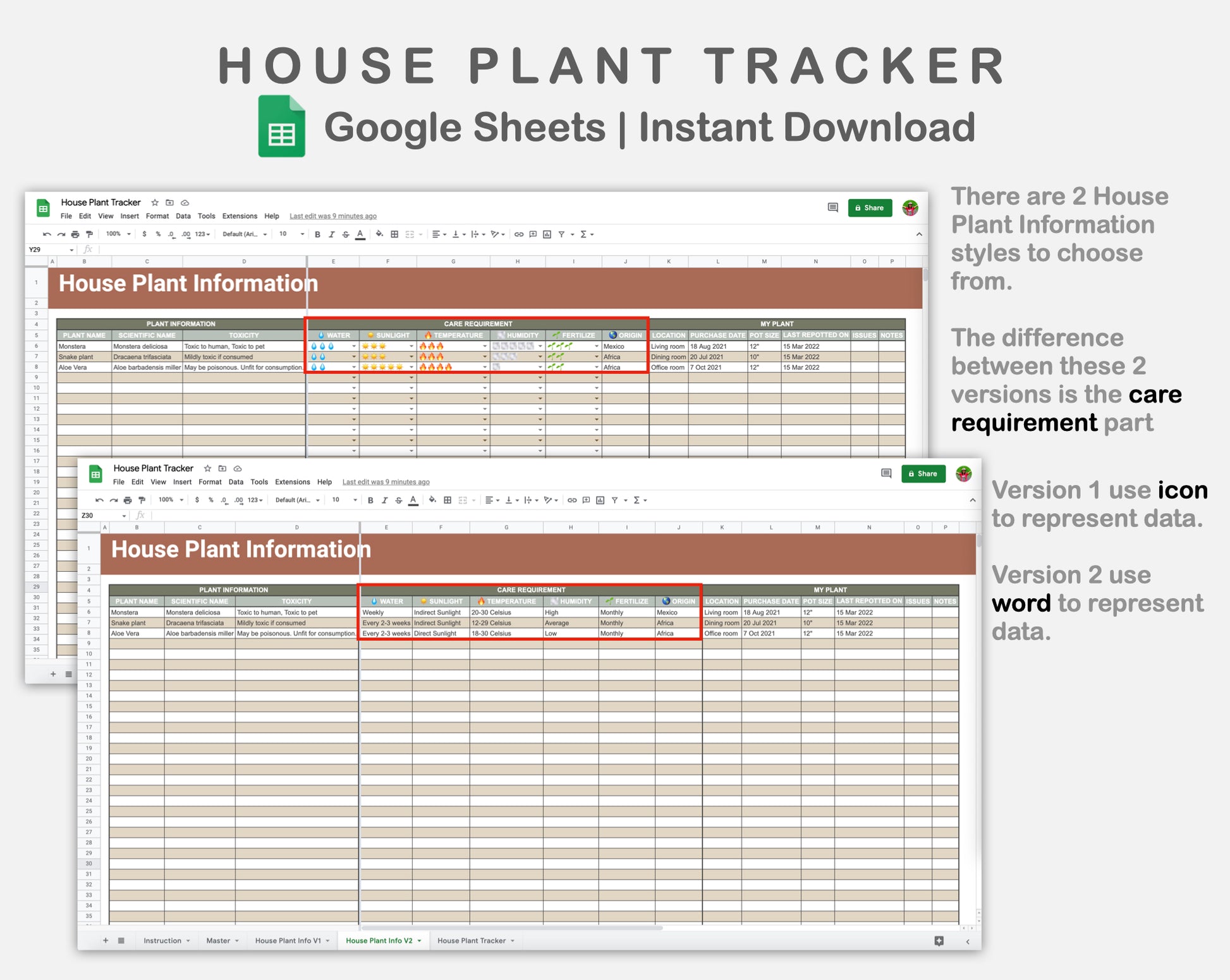 This House Plant Care Spreadsheet for Google Sheets is made in EARTHY theme in order to help you plan, record, and grow your plant.