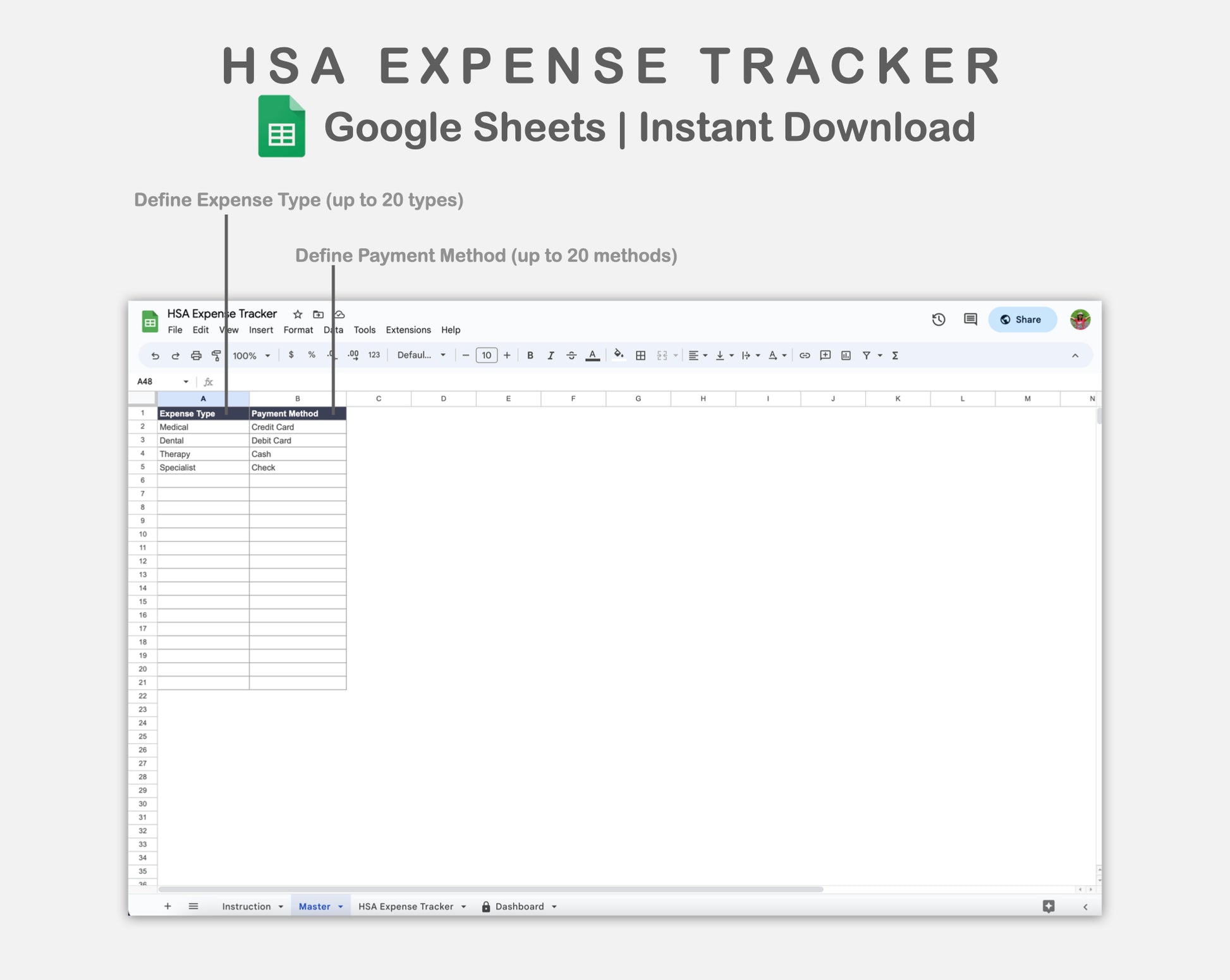 This HSA Expense Tracker Spreadsheet for Google Sheets is made in SWEET theme in order to help you keep track of your health expenses, so you know how much was spent.