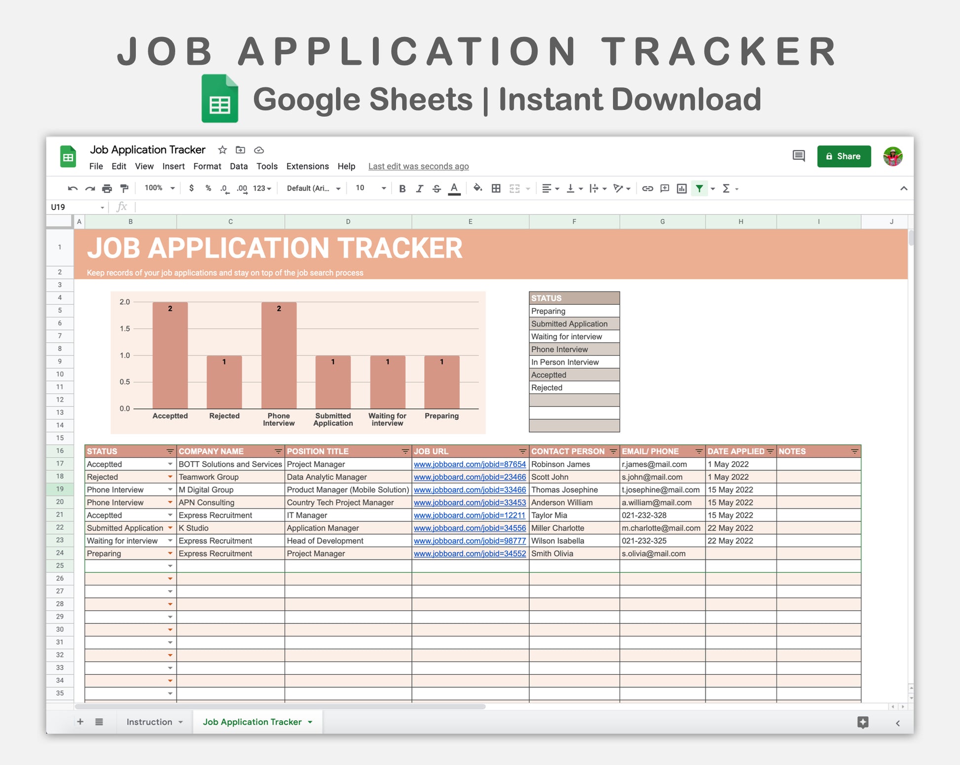 This Job Application Tracker Spreadsheet for Google Sheets is made in NEUTRAL theme in order to help you stay on top of your job hunt, track every application, and land your dream job.