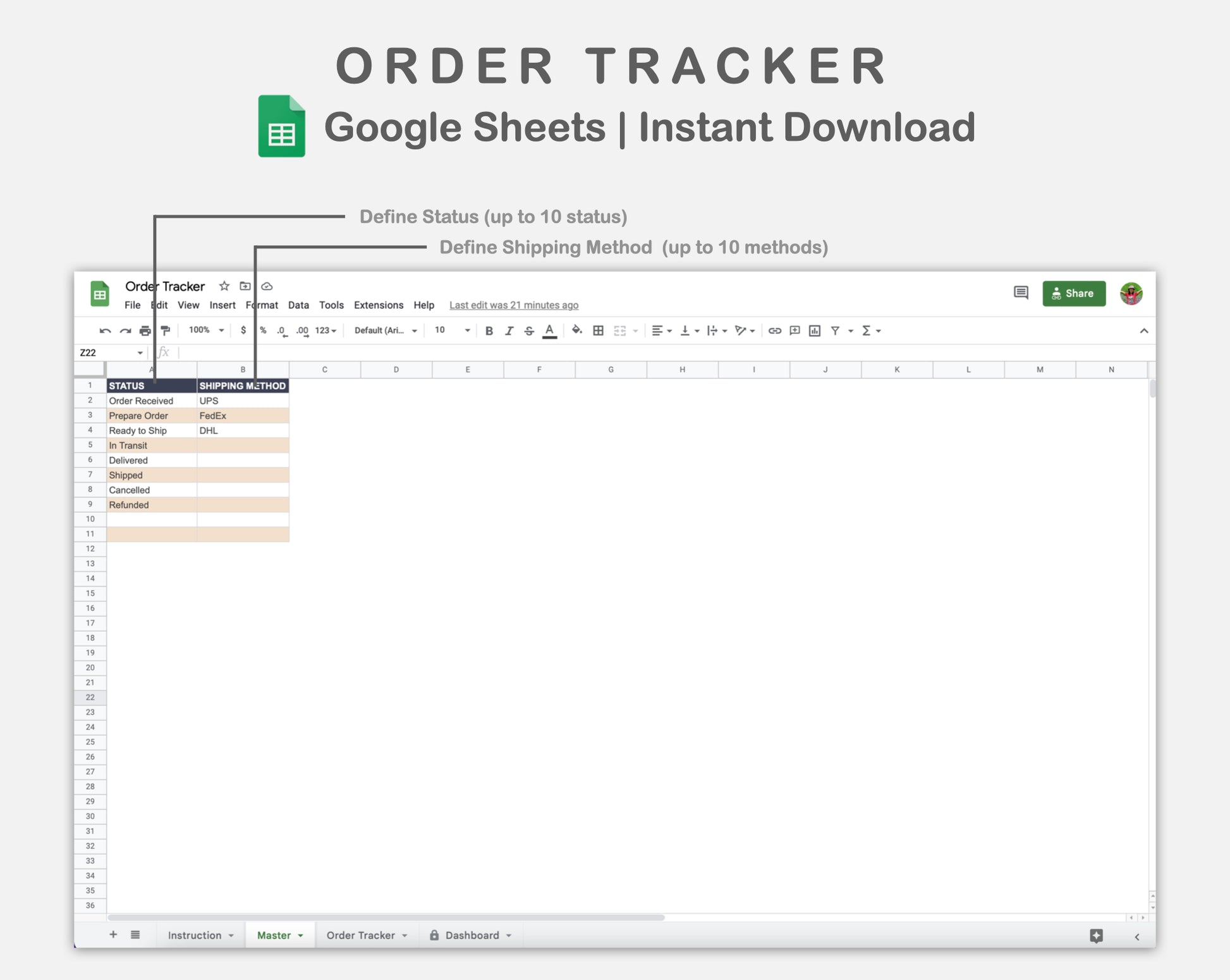 This Order Tracker for Google Sheets is made in SWEET theme in order to help you track of orders, shipment status, and received amount.