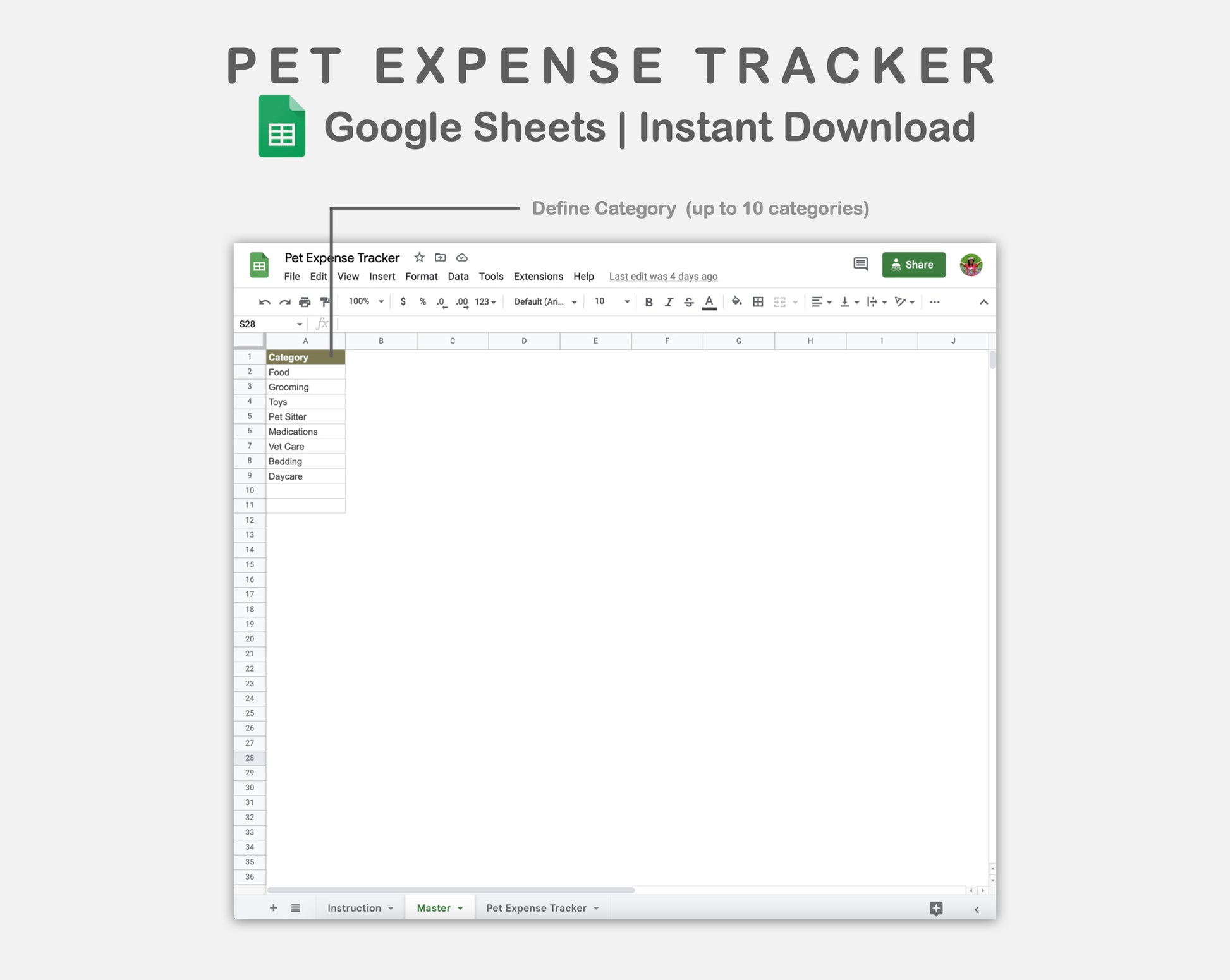 This Pet Expense Tracker Spreadsheet for Google Sheets is made in BOHO theme in order to help you keep track of your pet expenses and stay on a budget.