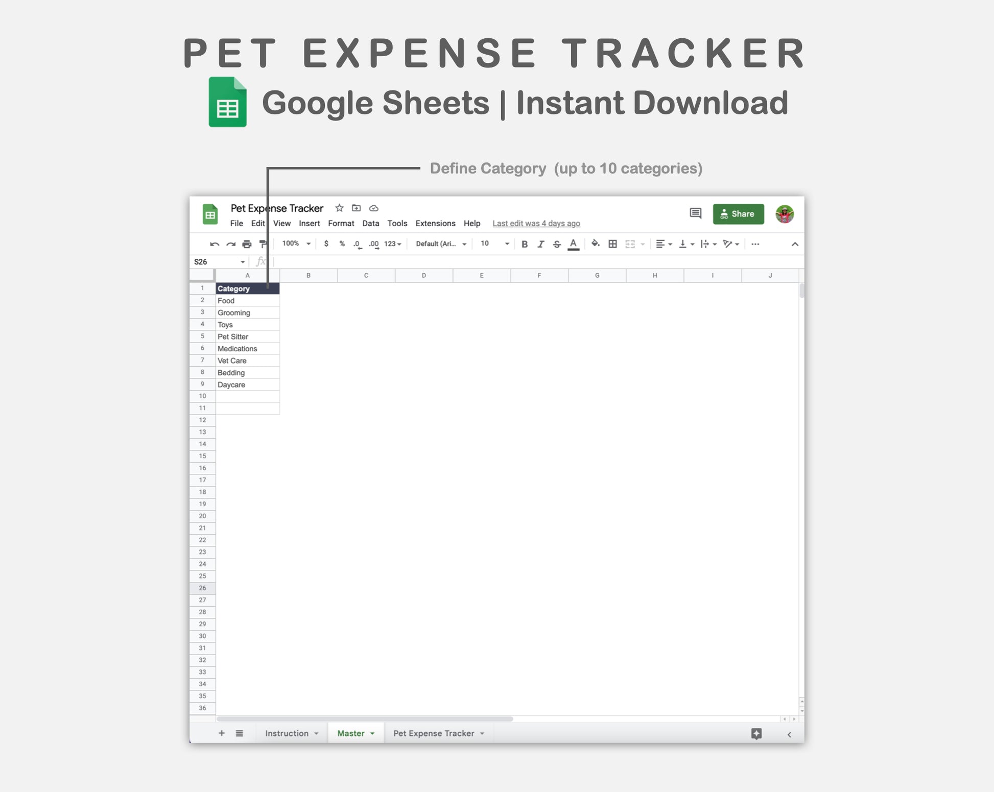 This Pet Expense Tracker Spreadsheet for Google Sheets is made in SWEET theme in order to help you keep track of your pet expenses and stay on a budget.