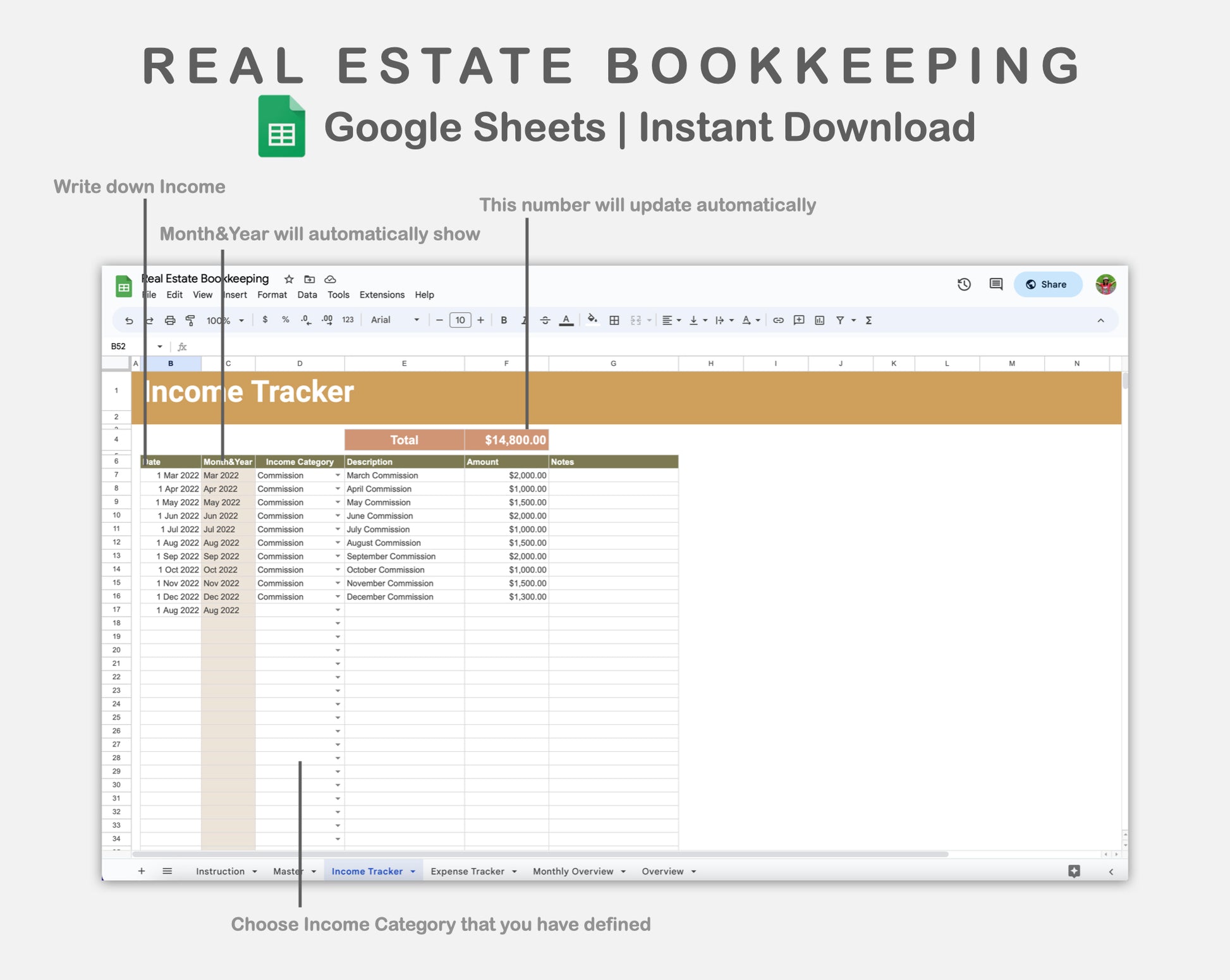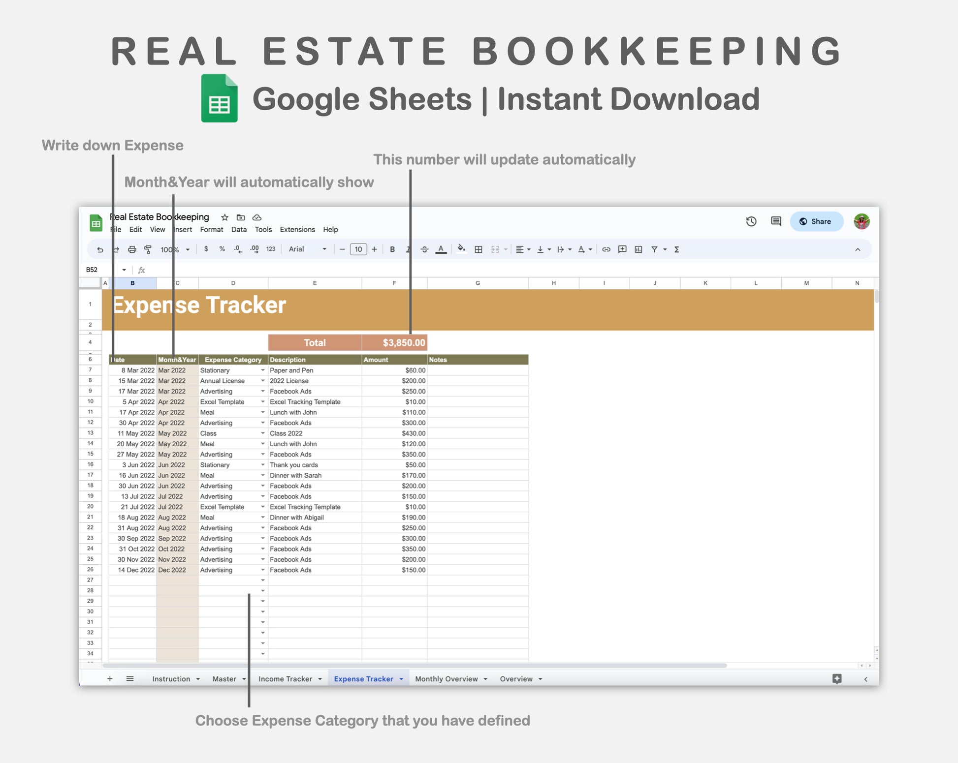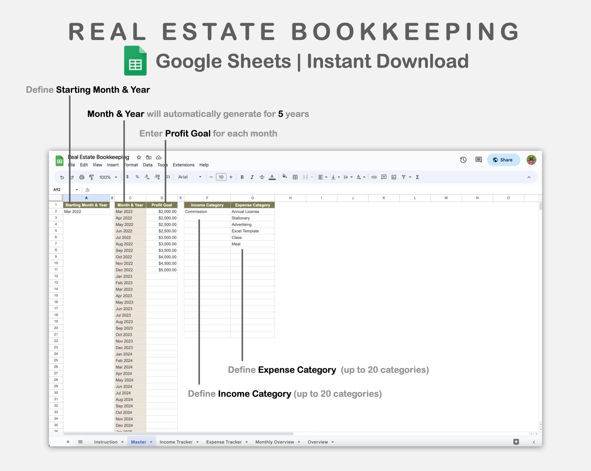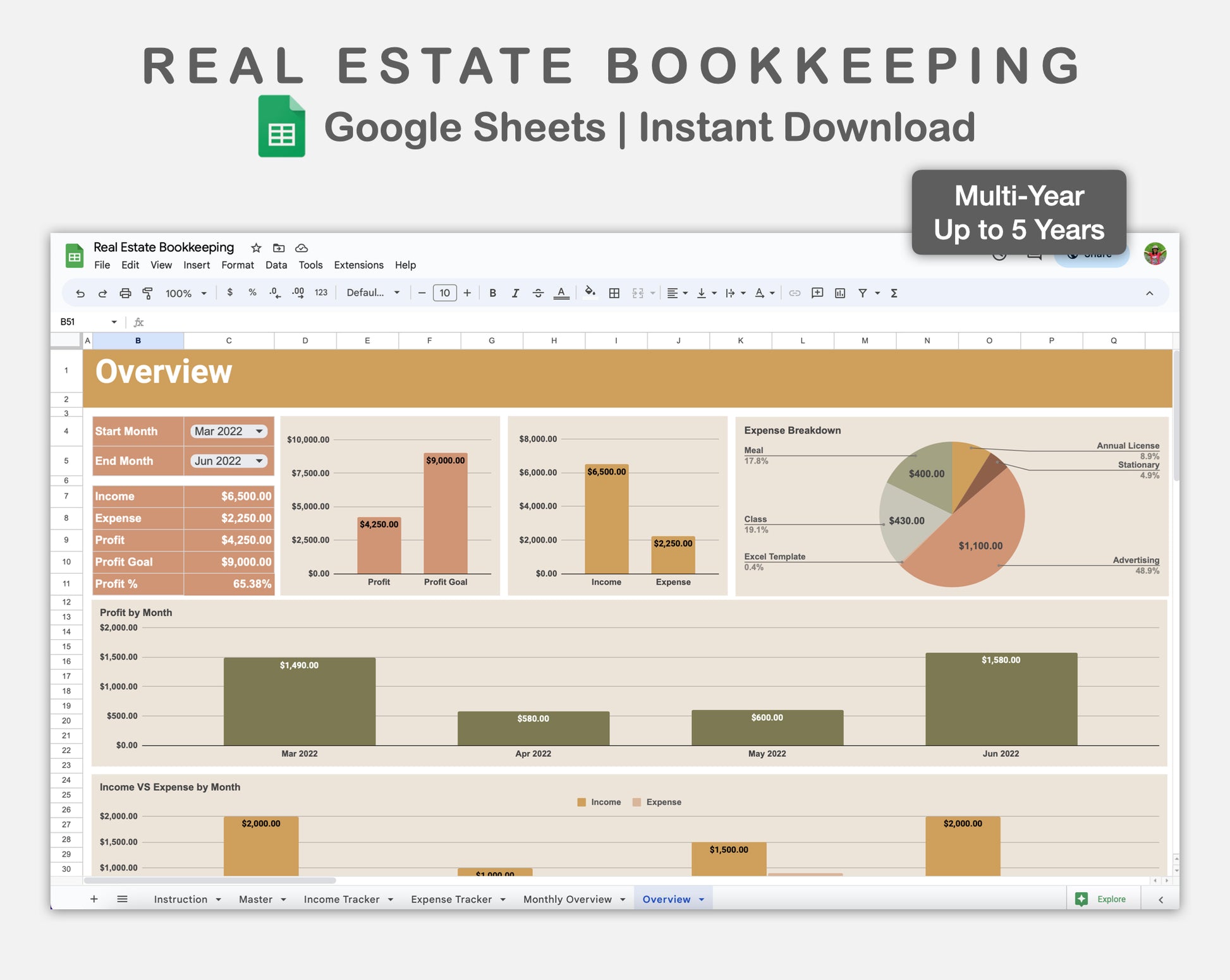 This Real Estate Bookkeeping for Google Sheets is made in BOHO theme in order to help you track your real estate business incomes, expenses and also profits for multi-year (up to 5 years).