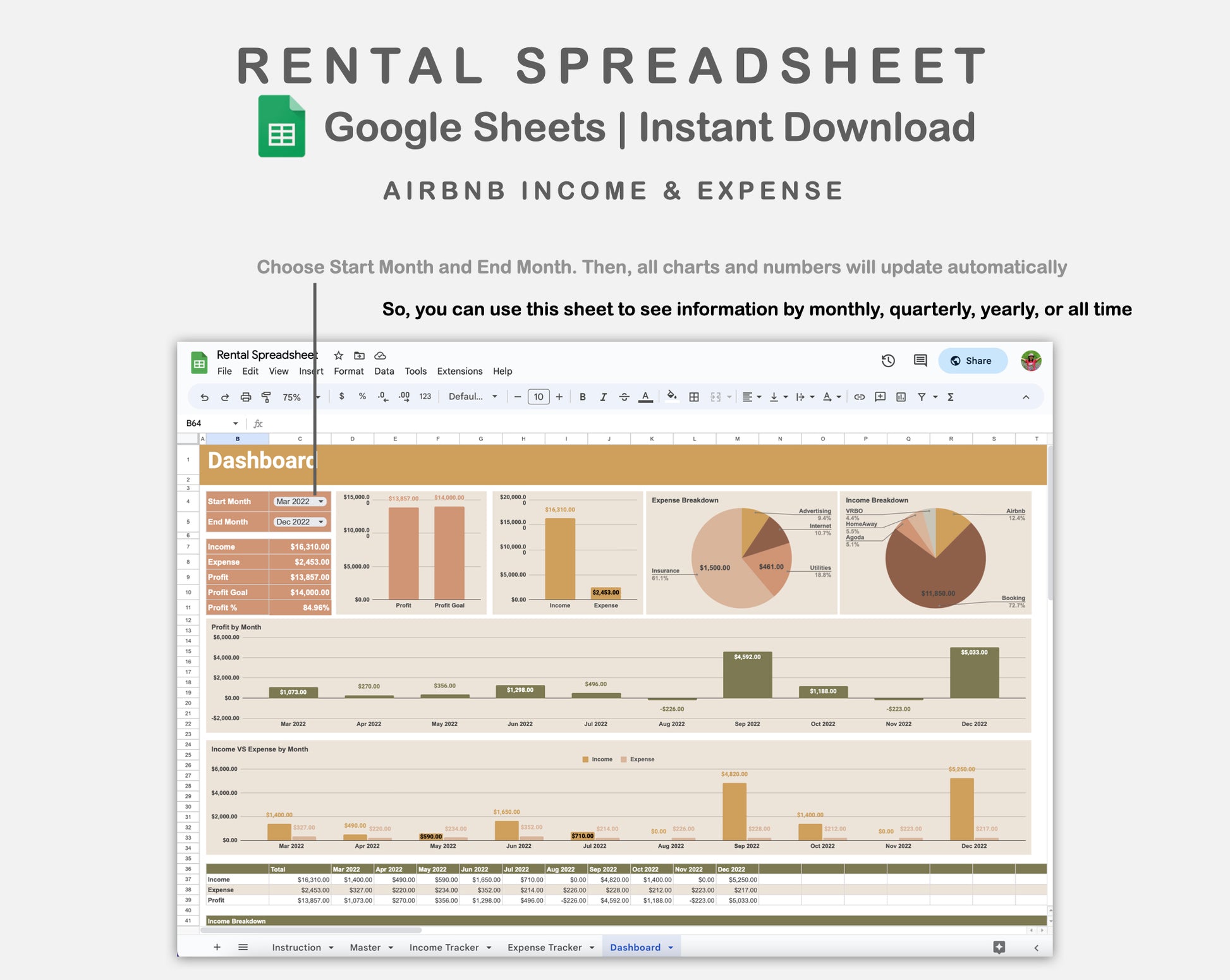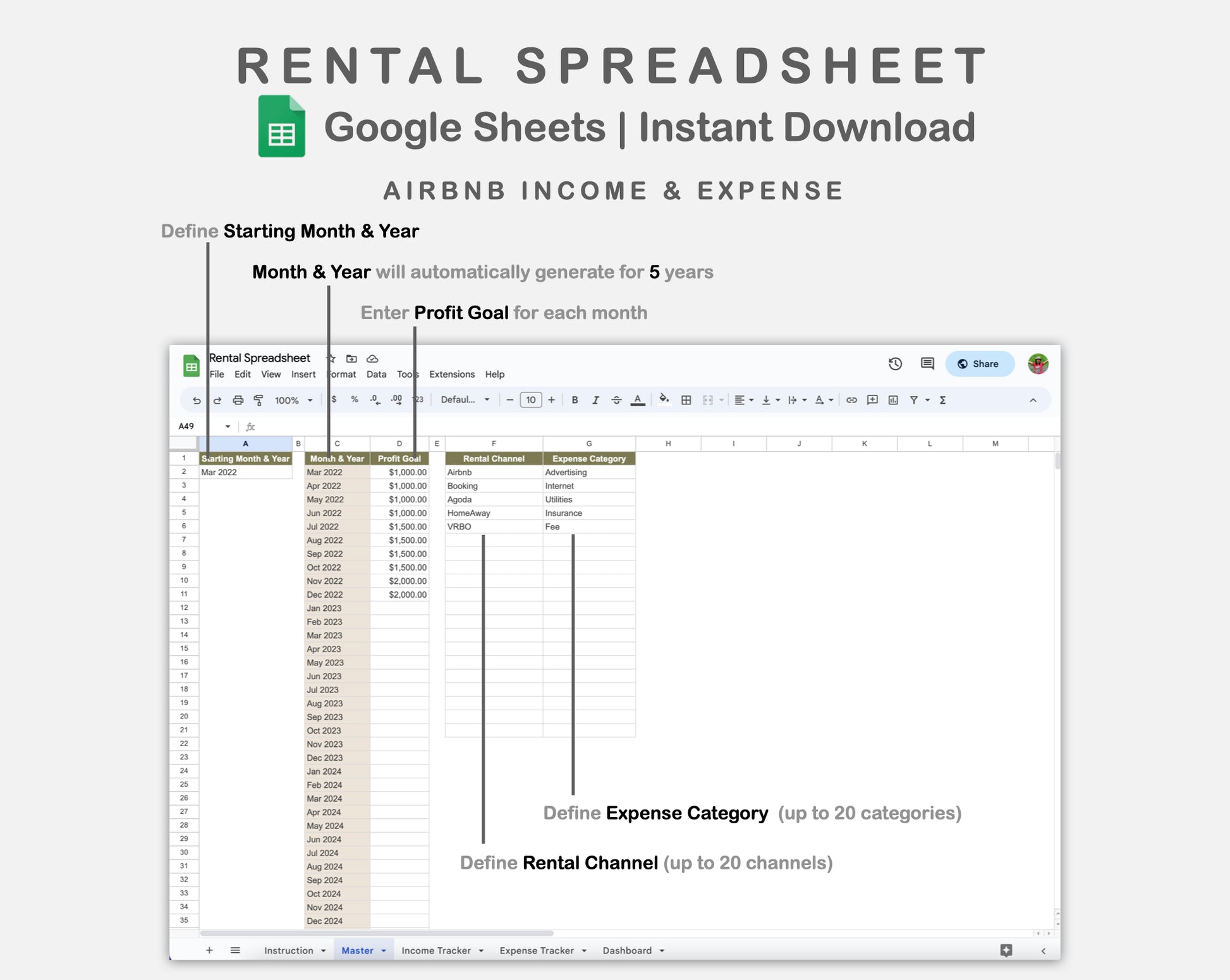 Google Sheets - Rental Spreadsheet - Boho