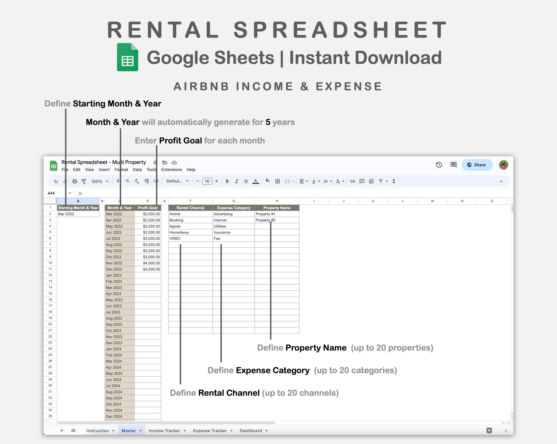 This Rental Spreadsheet for Google Sheets is made in EARTHY theme in order to help you track your rental business incomes, expenses and also profits for multi-year (up to 5 years). The template is designed for multi-property (up to 20 properties).