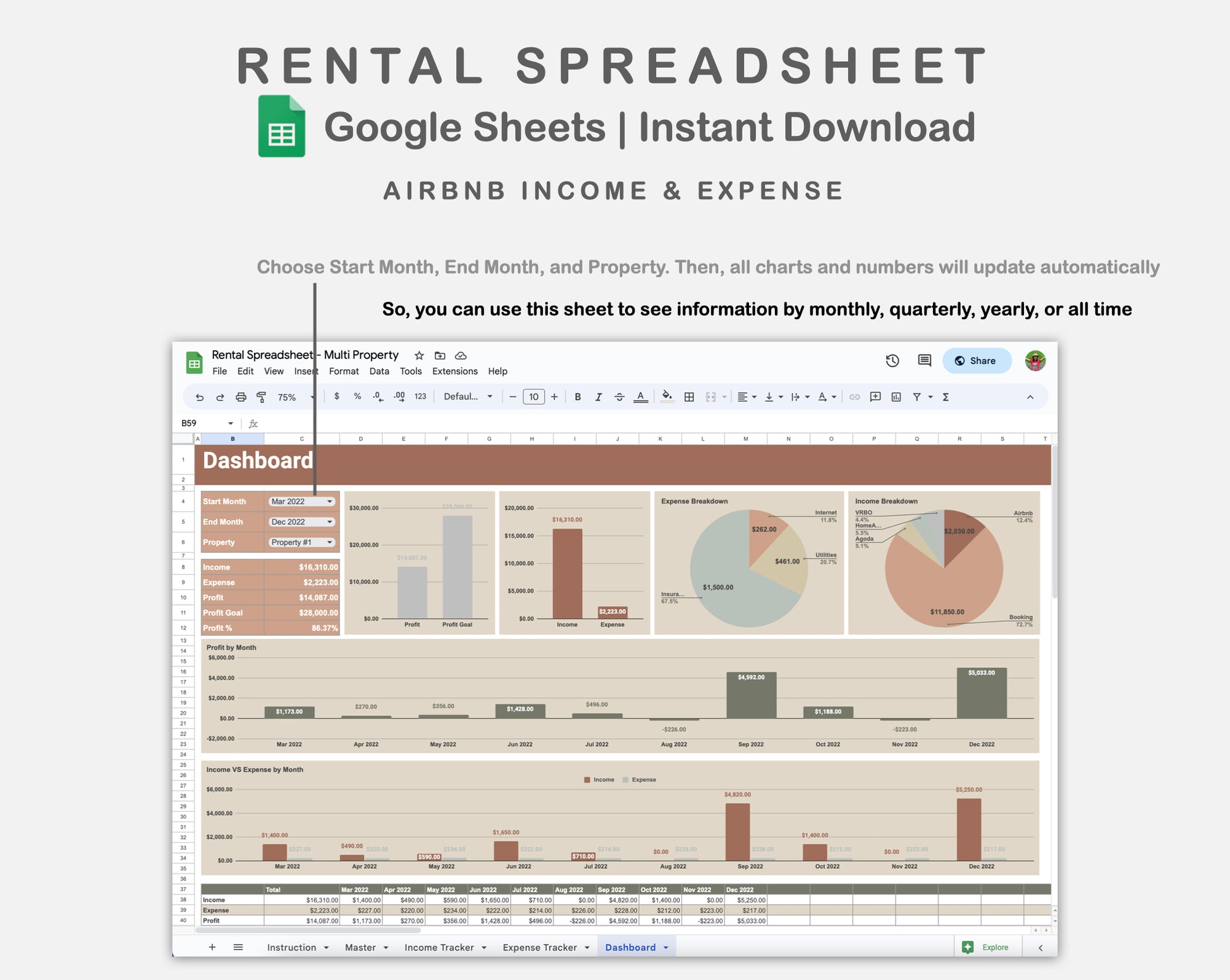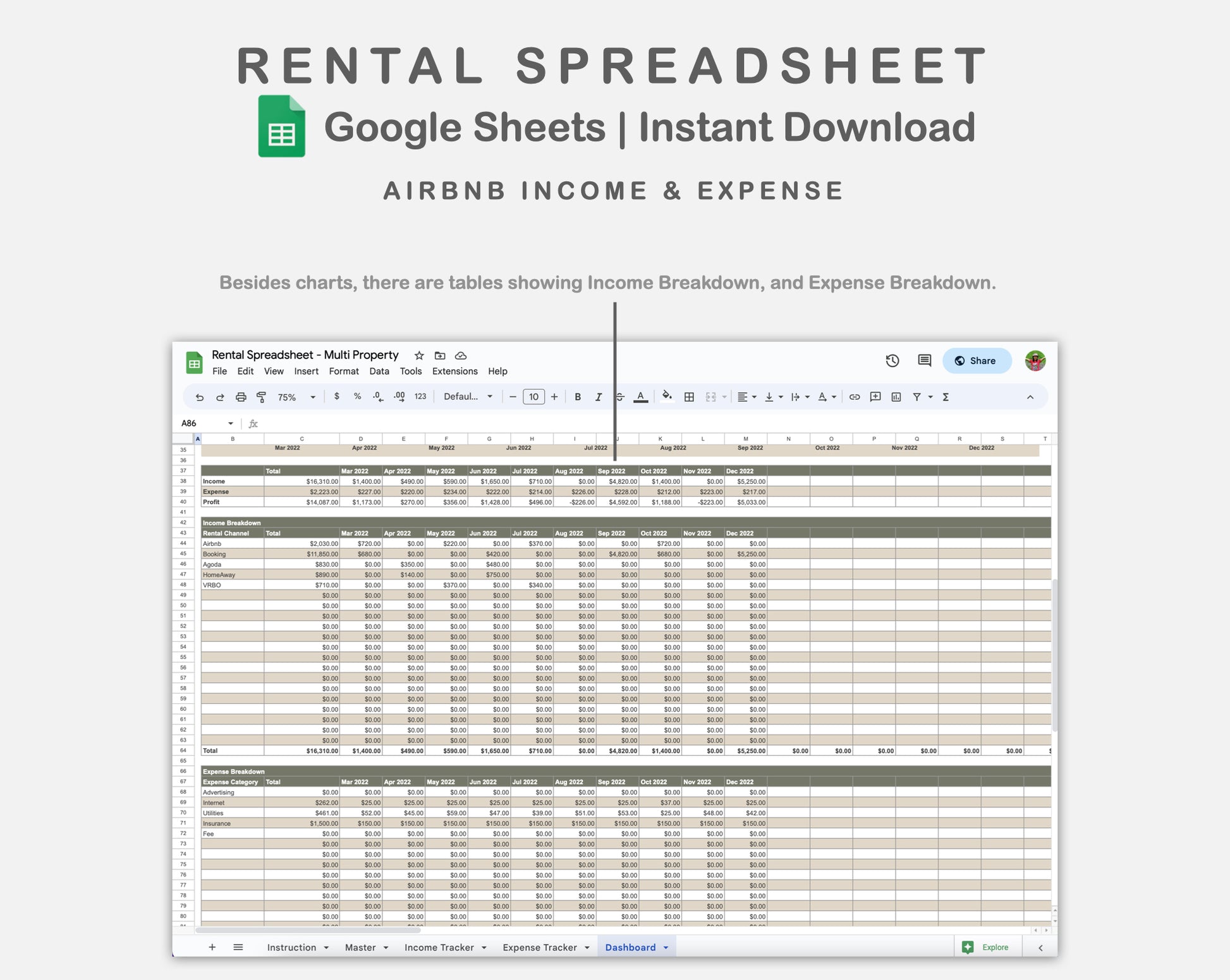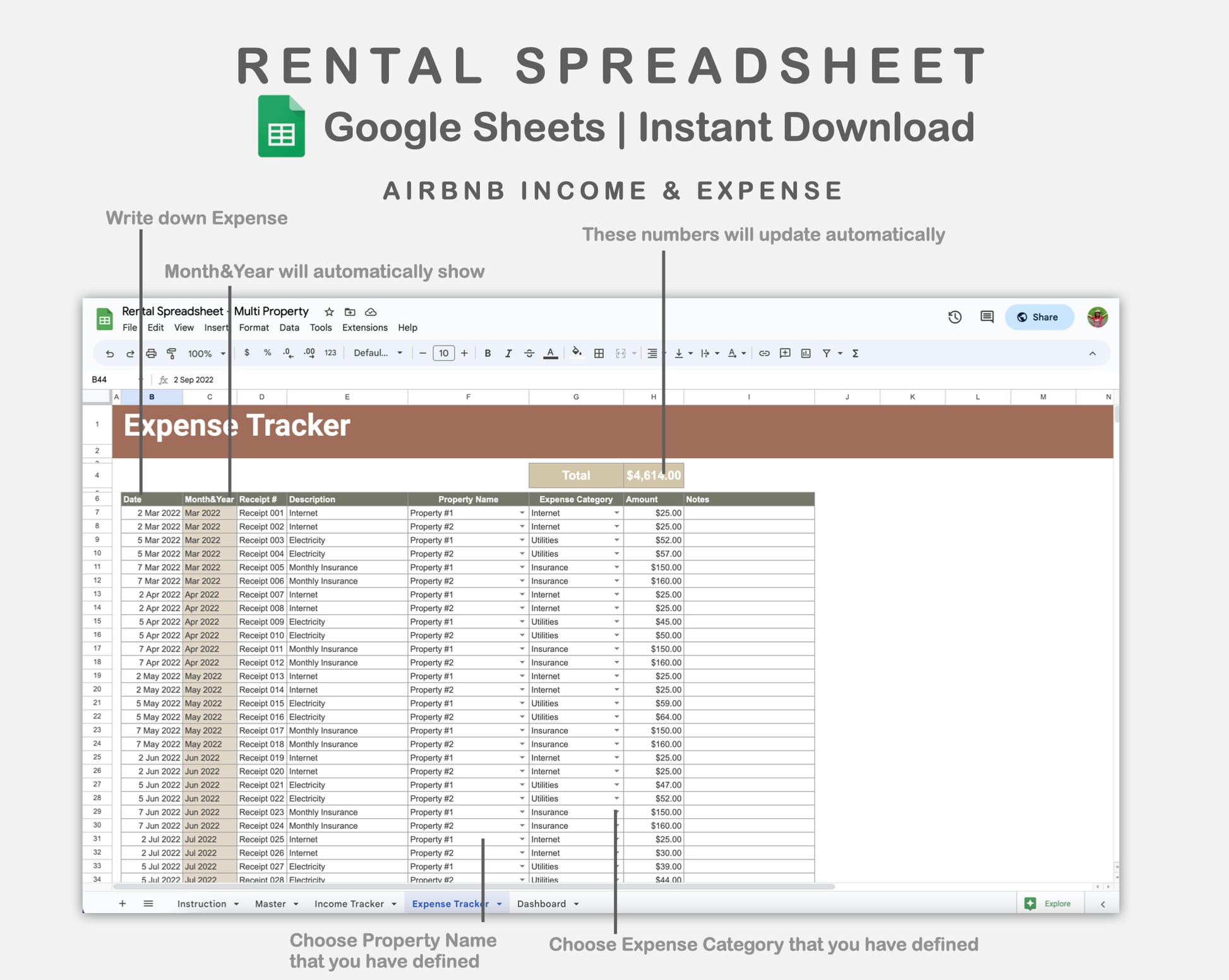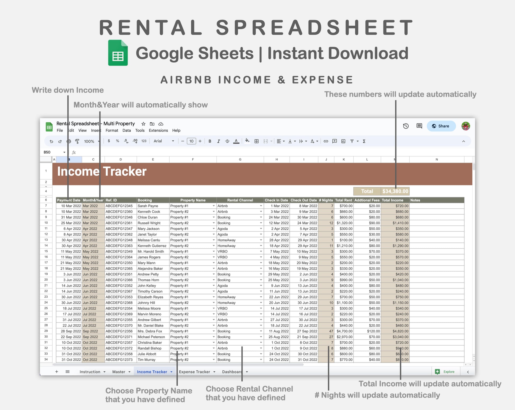 Google Sheets - Rental Spreadsheet - Multi Property - Earthy