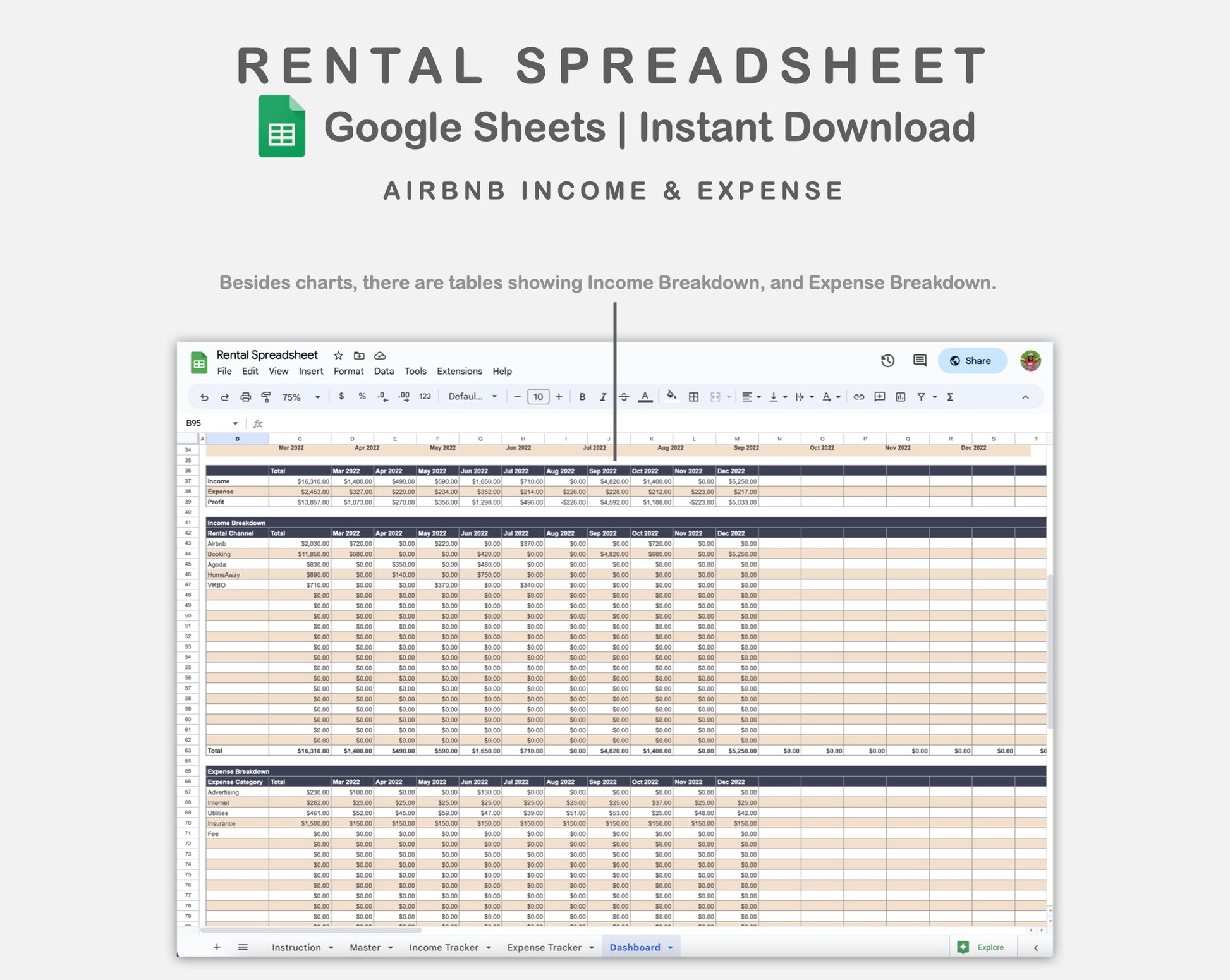 This Rental Spreadsheet for Google Sheets is made in SWEET theme in order to help you track your rental business incomes, expenses and also profits for multi-year (up to 5 years). The template is designed for single property.