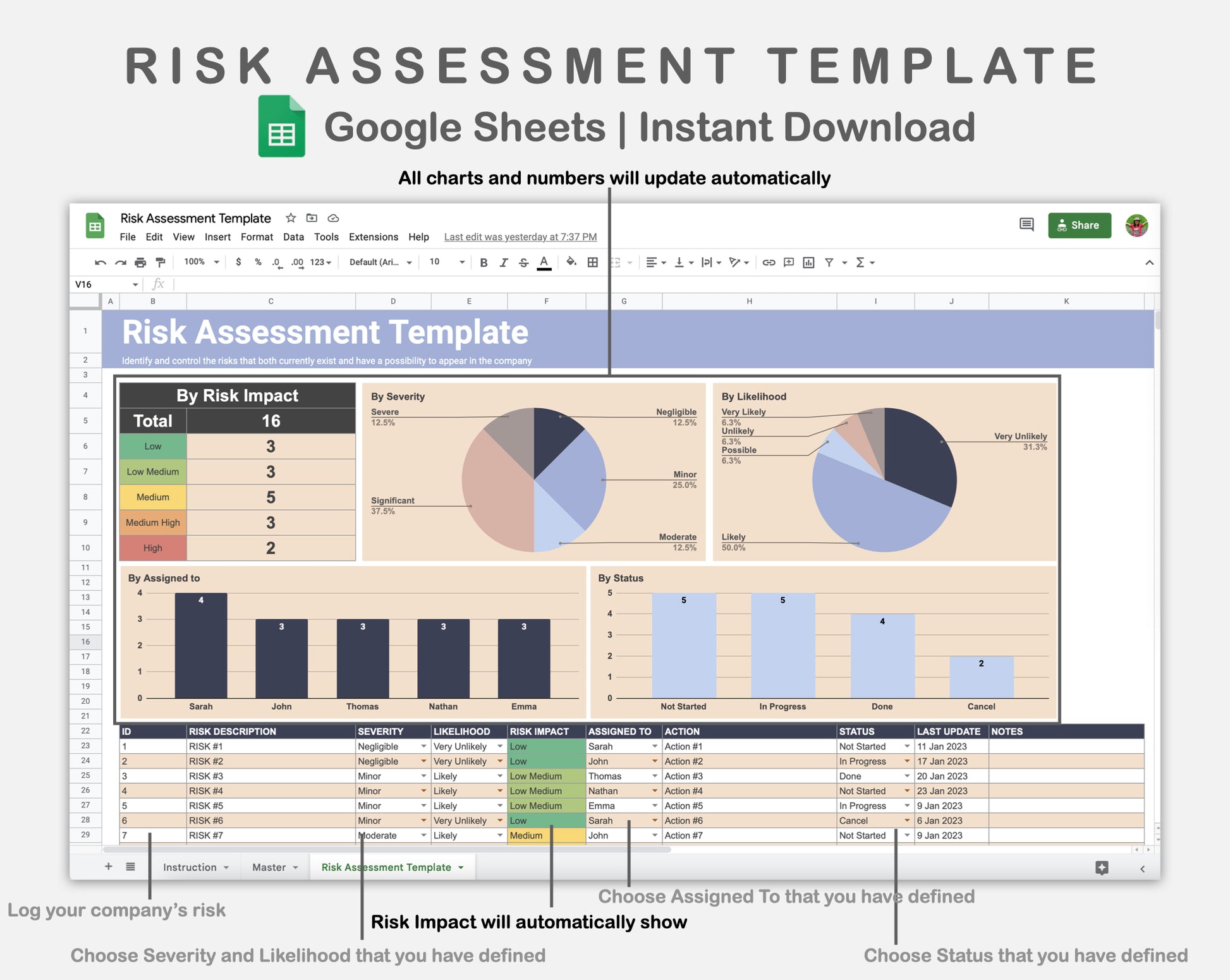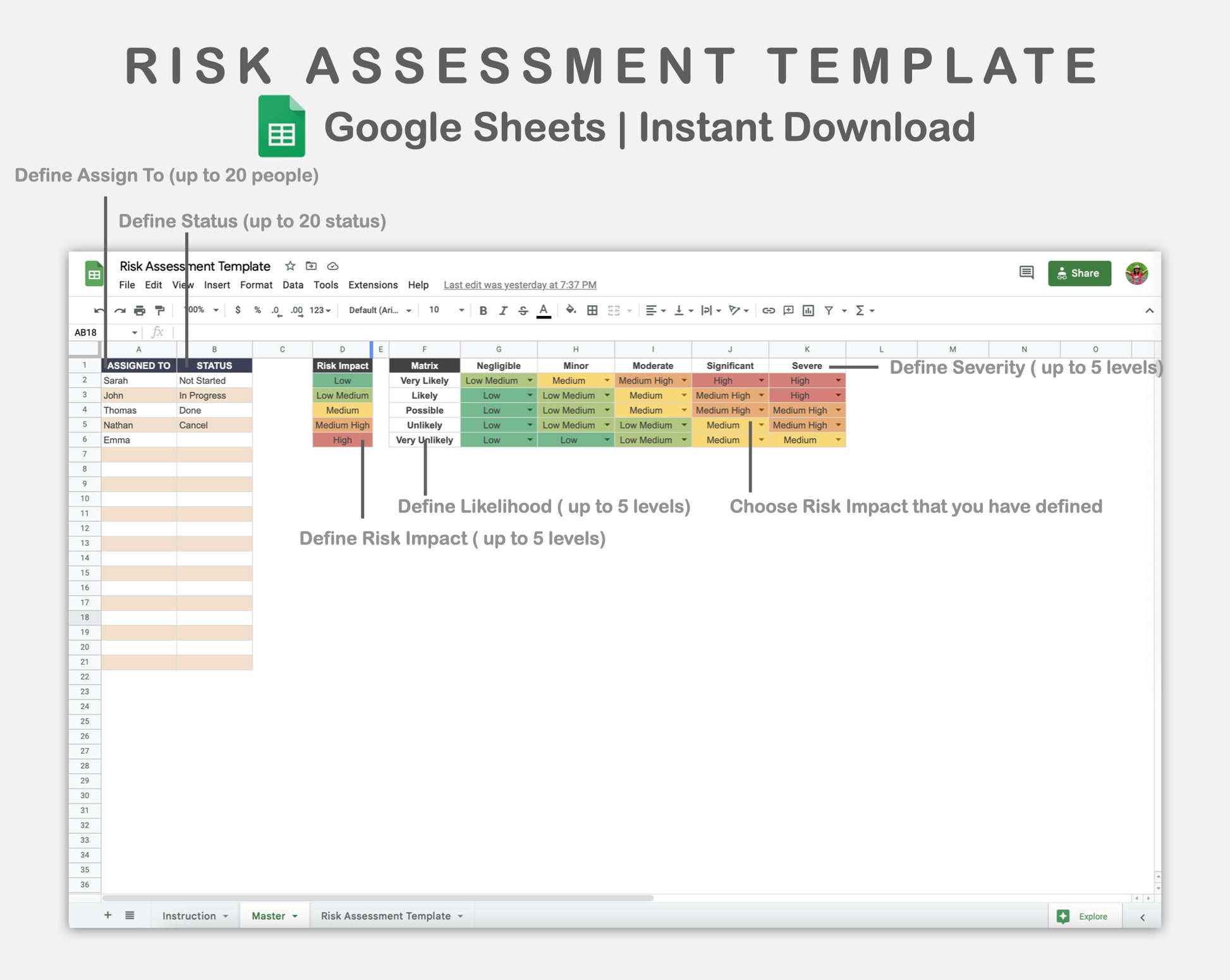 Google Sheets - Risk Assessment Template - Sweet