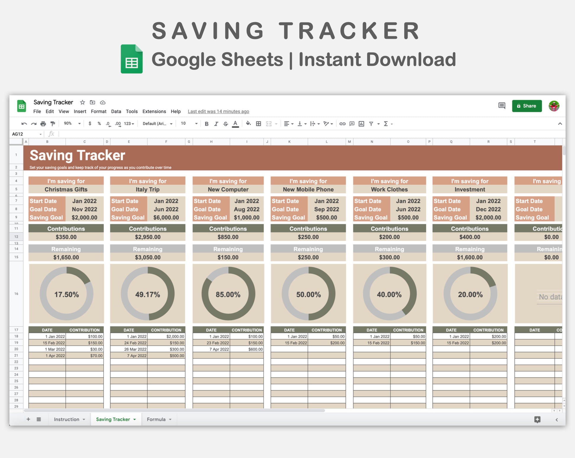 This Savings Tracker Spreadsheet for Google Sheets is made in EARTHY theme in order to help you keep track of your savings goal.