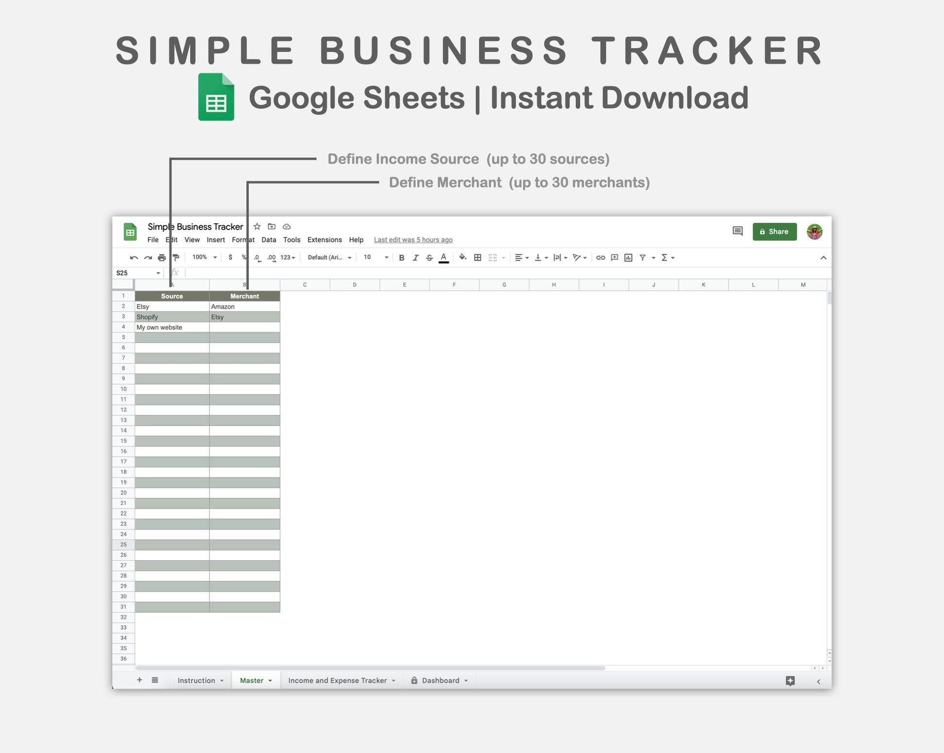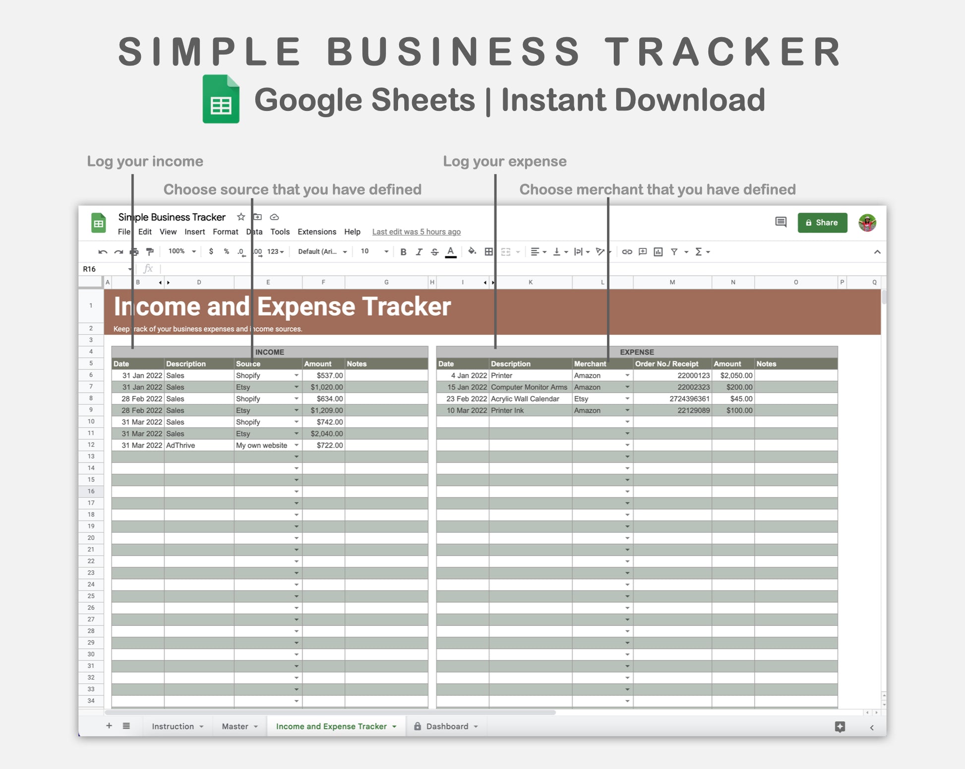Google Sheets - Simple Business Tracker - Earthy