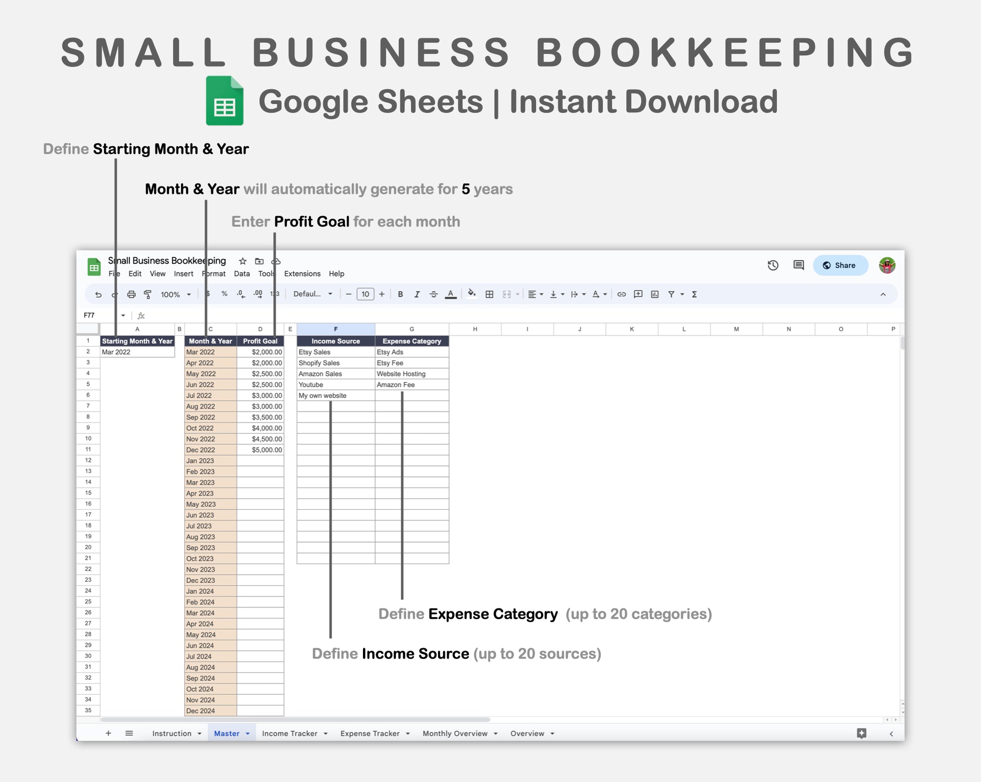 This Small Business Bookkeeping for Google Sheets is made in SWEET theme in order to help you track your business incomes, expenses and also profits for multi-year (up to 5 years).