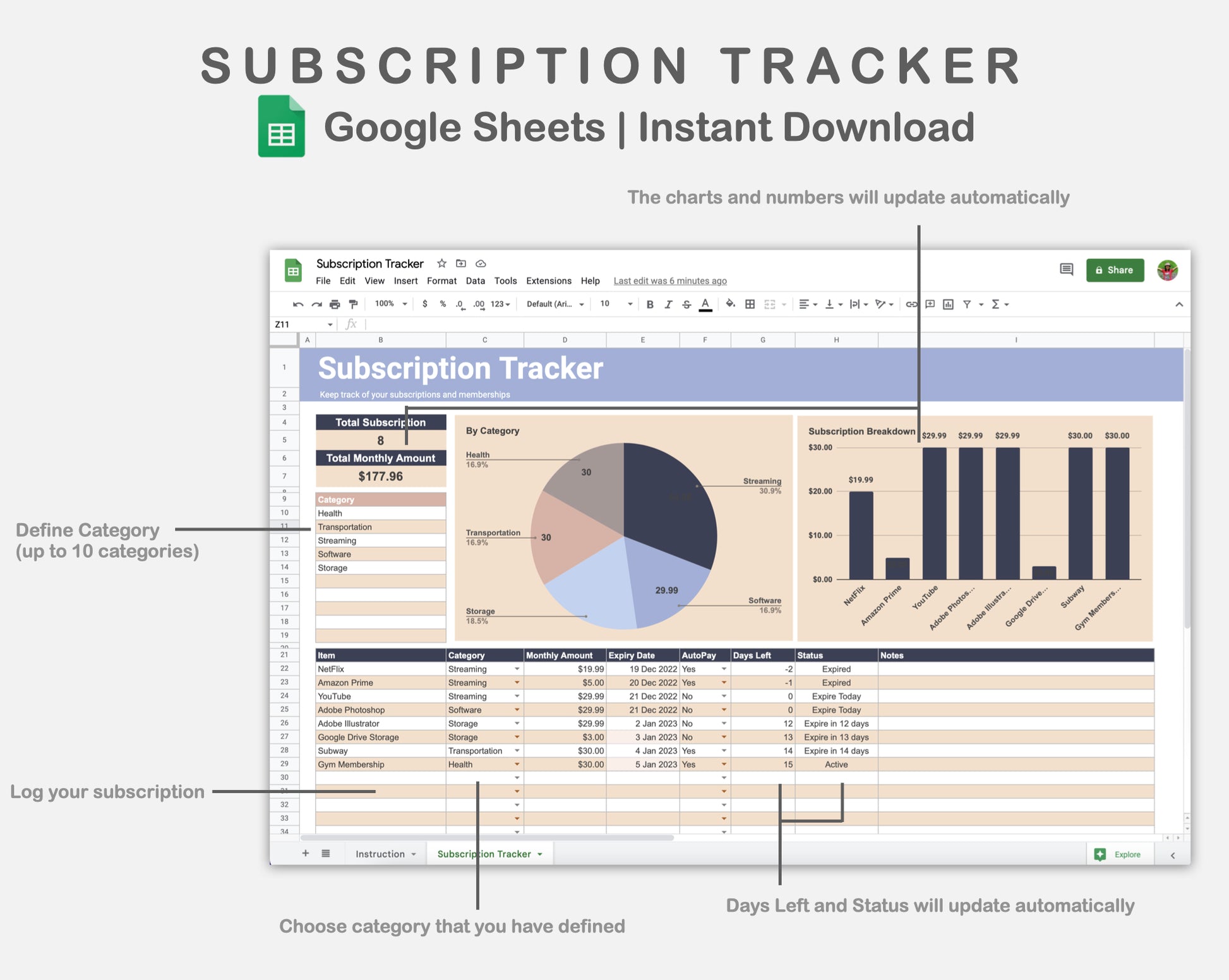 Google Sheets - Subscription Tracker - Sweet