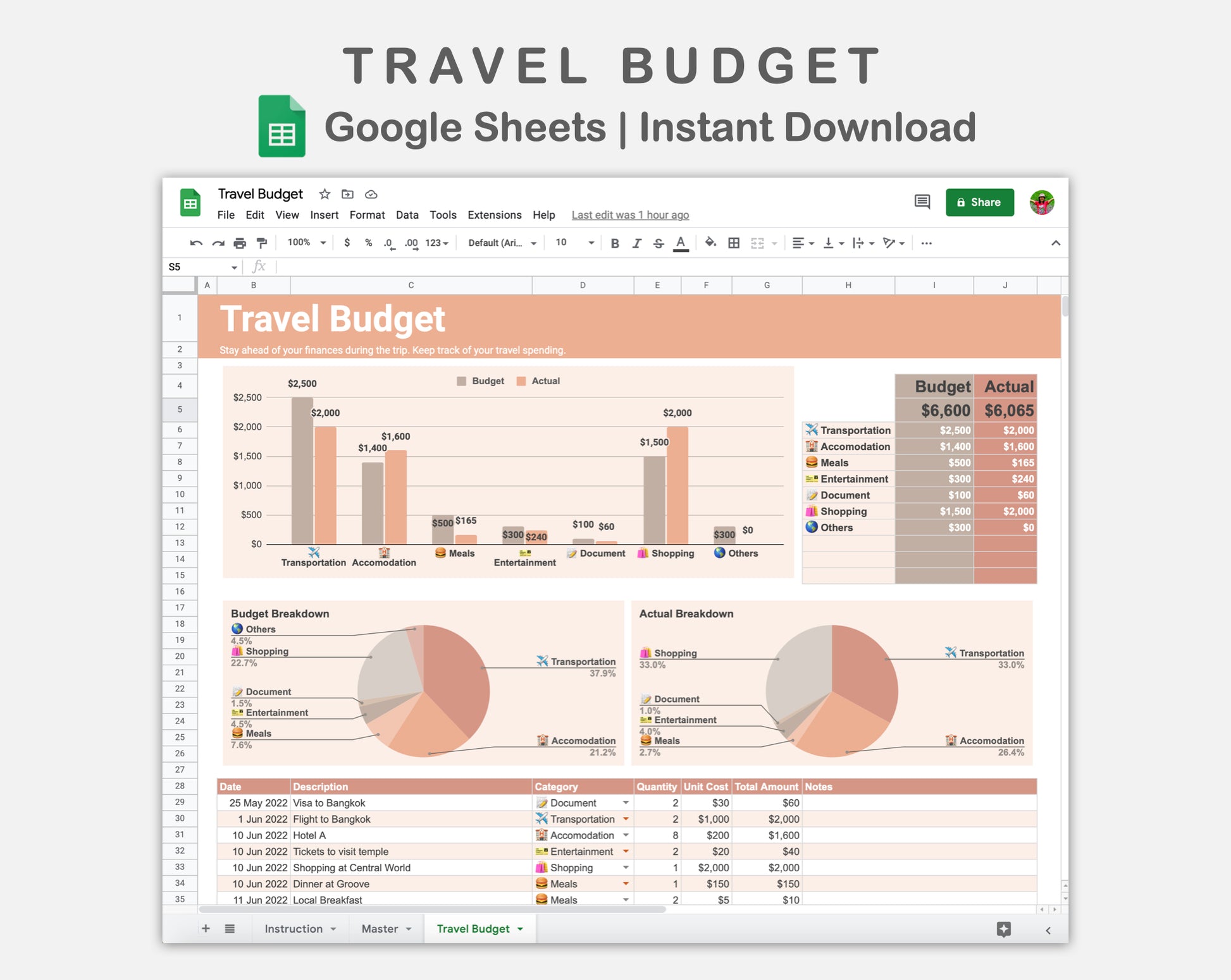 This Travel Budget Spreadsheet for Google Sheets is made in NEUTRAL theme in order to help you keep track of your travel spending and stay ahead of your finances during the trip.