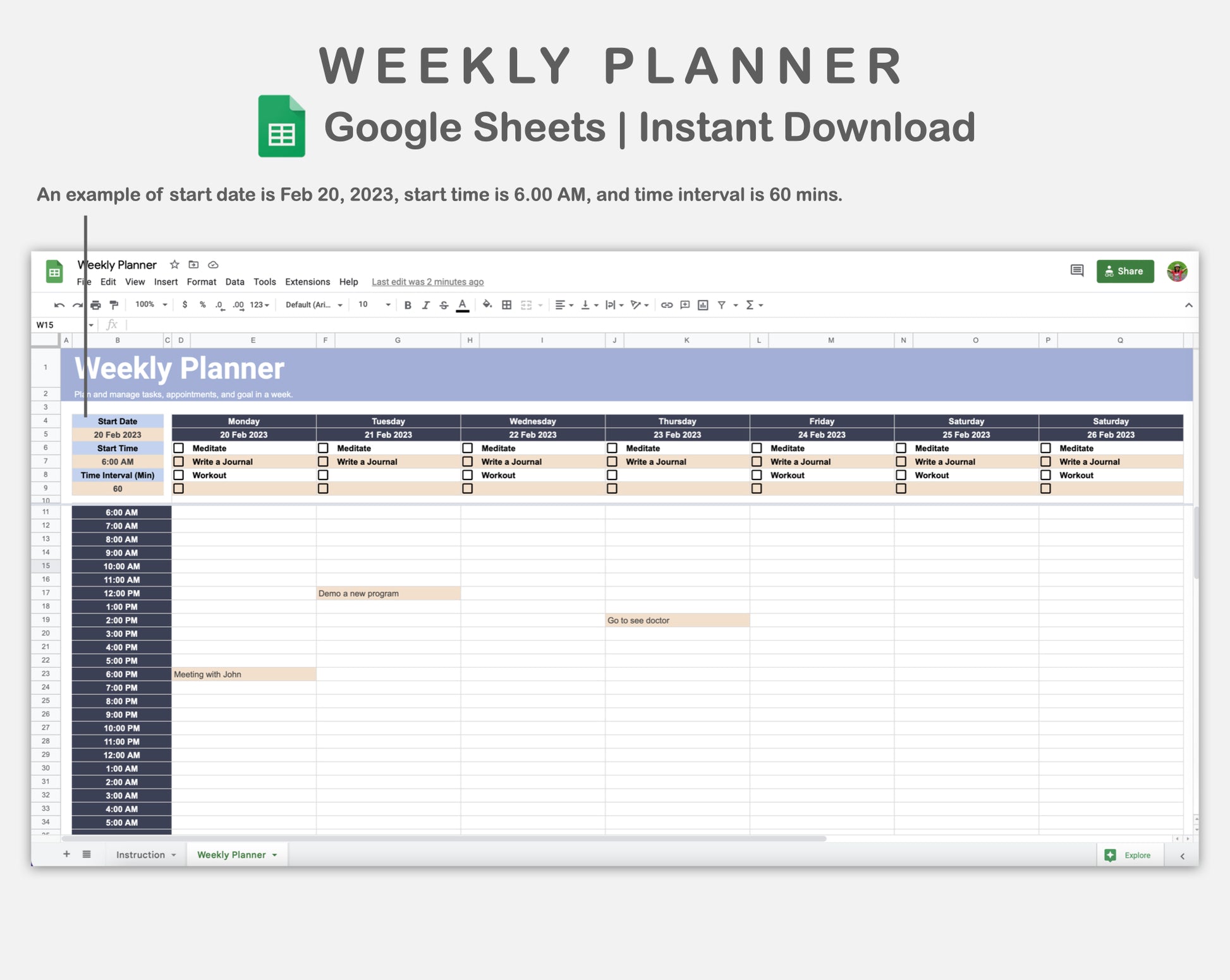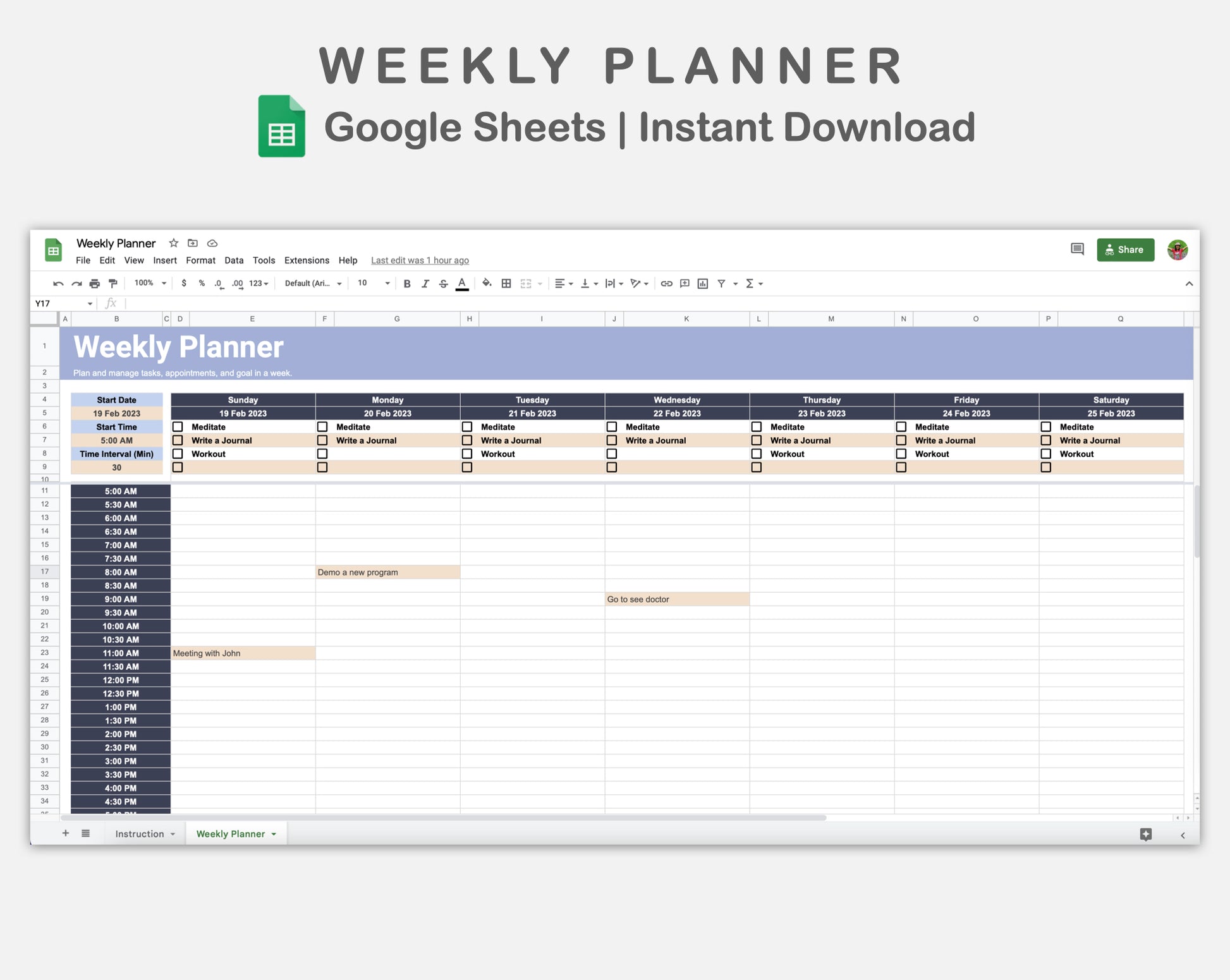 This Weekly Planner Template for Google Sheets is made in Sweet theme in order to help you plan and manage tasks, appointments, and goal in a week.
