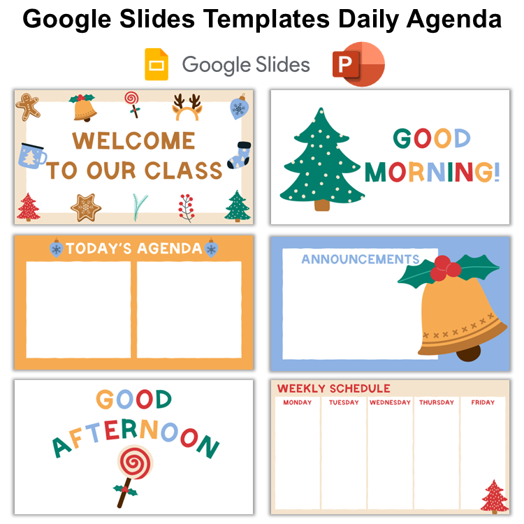 Google Slides Templates Daily Agenda - Bright Christmas | Editable