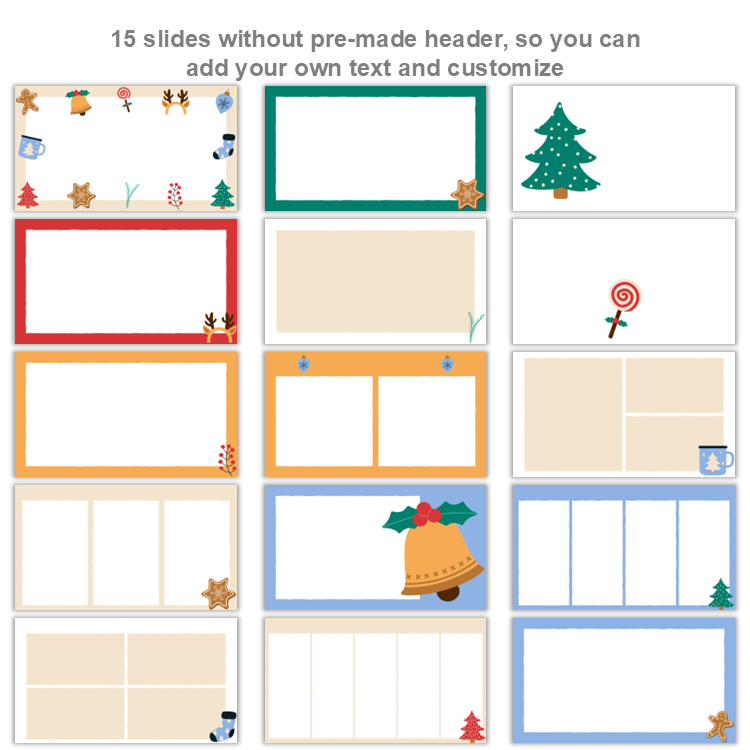• Slides without pre-made headers, so you can add your own text and customize x 15