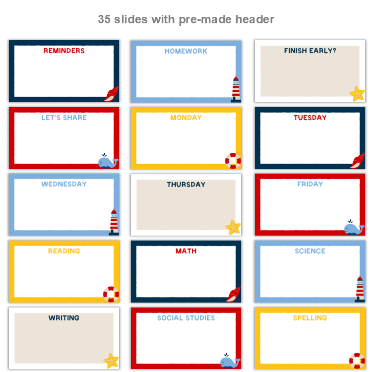 This listing is for 50 pre-made slides with a Nautical Theme that can be used for PowerPoint and Google Slides.