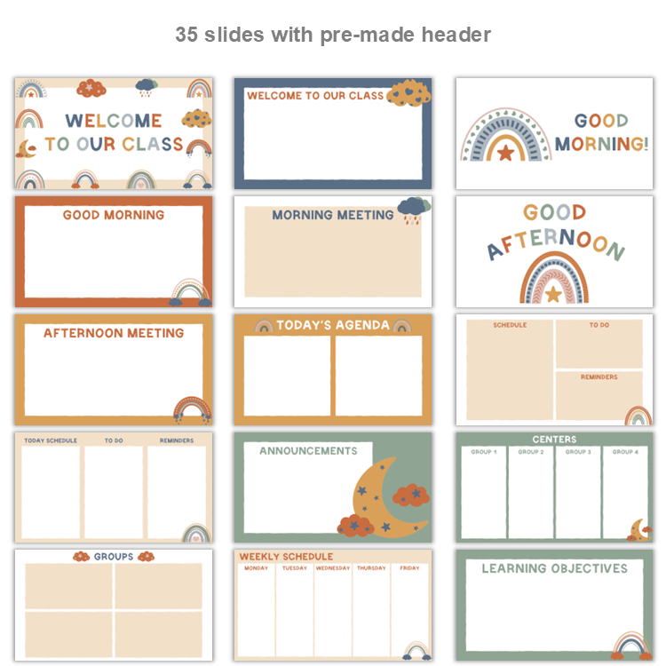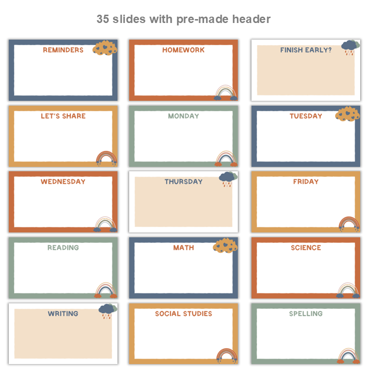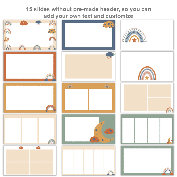 This listing is for 50 pre-made slides with a Neutral Rainbow Theme that can be used for PowerPoint and Google Slides.