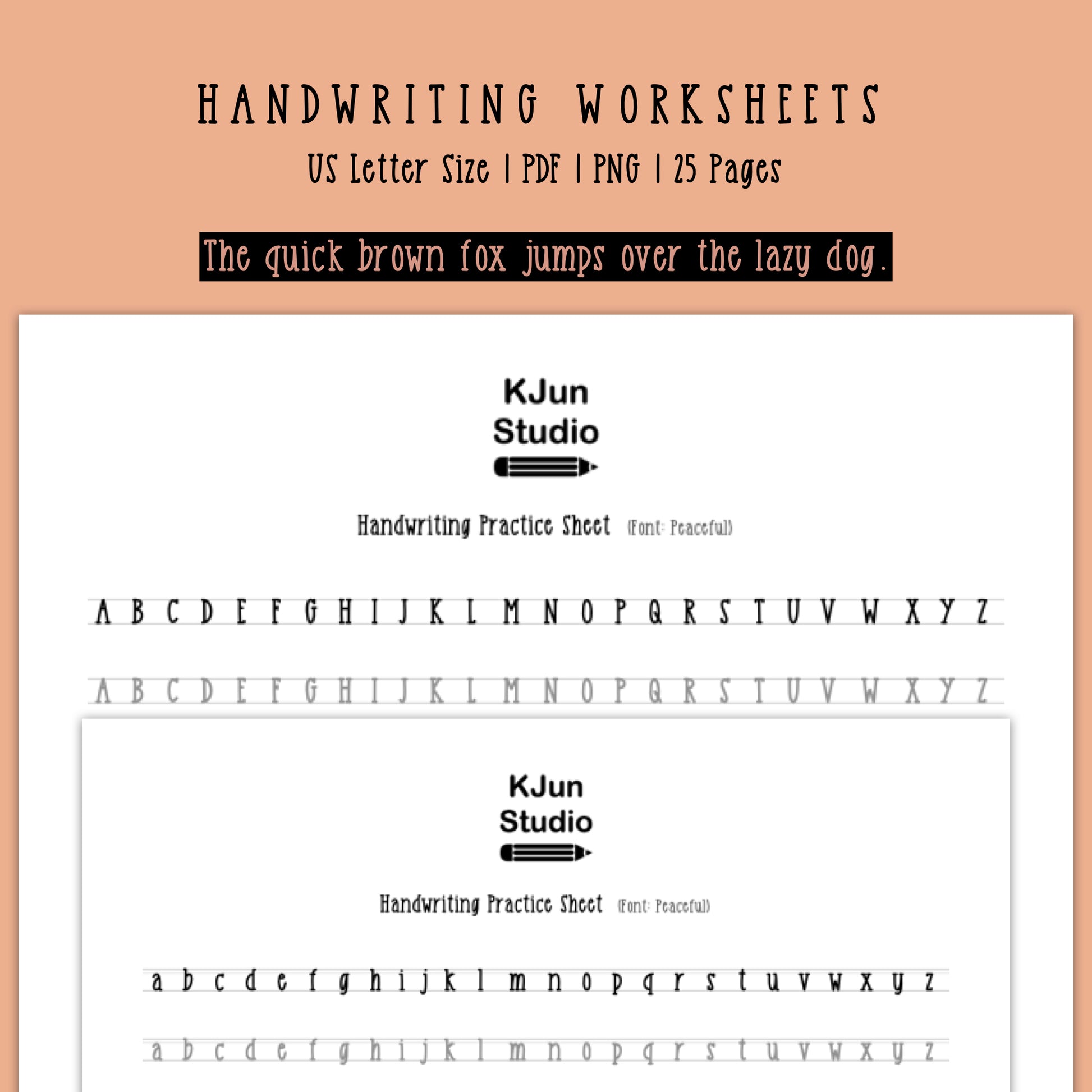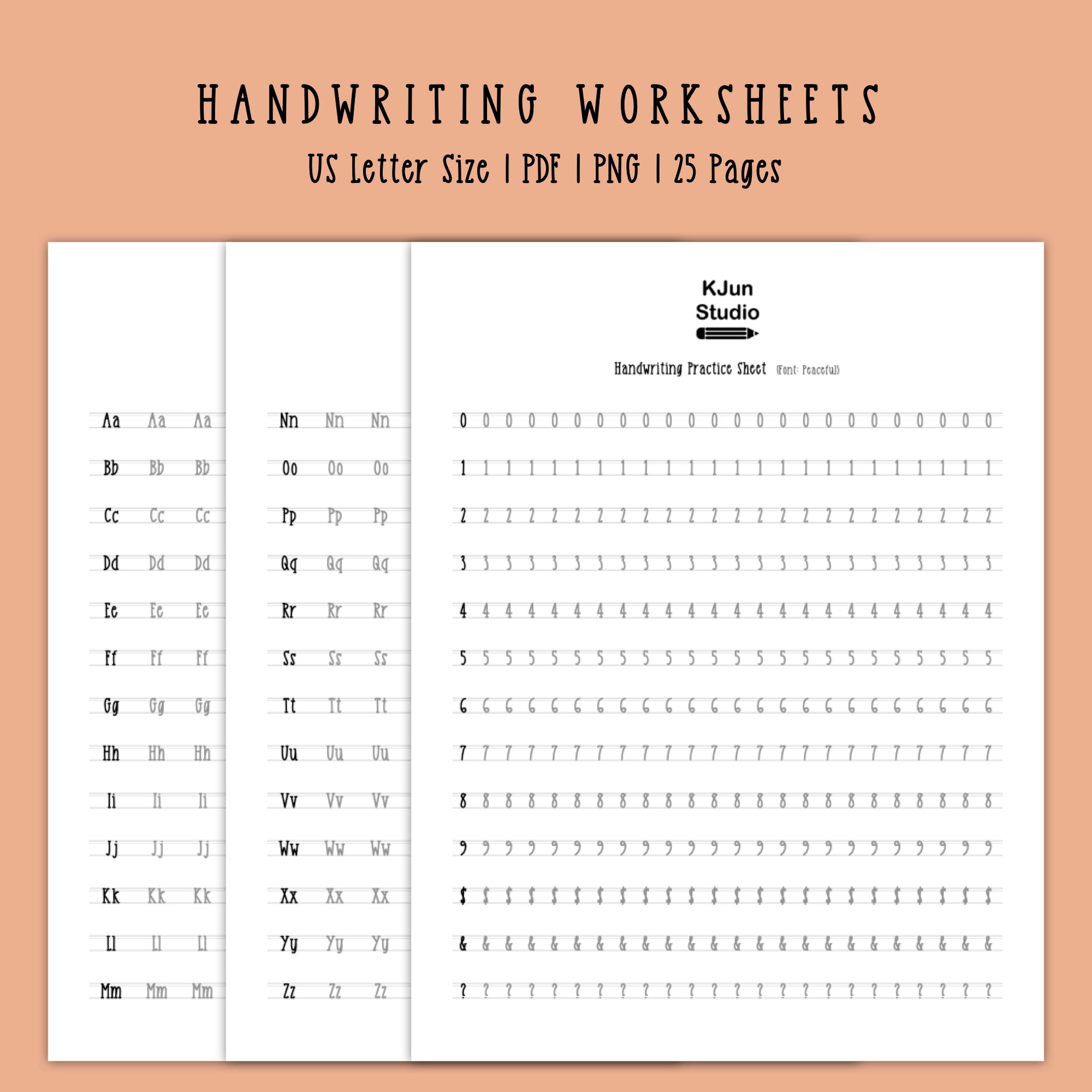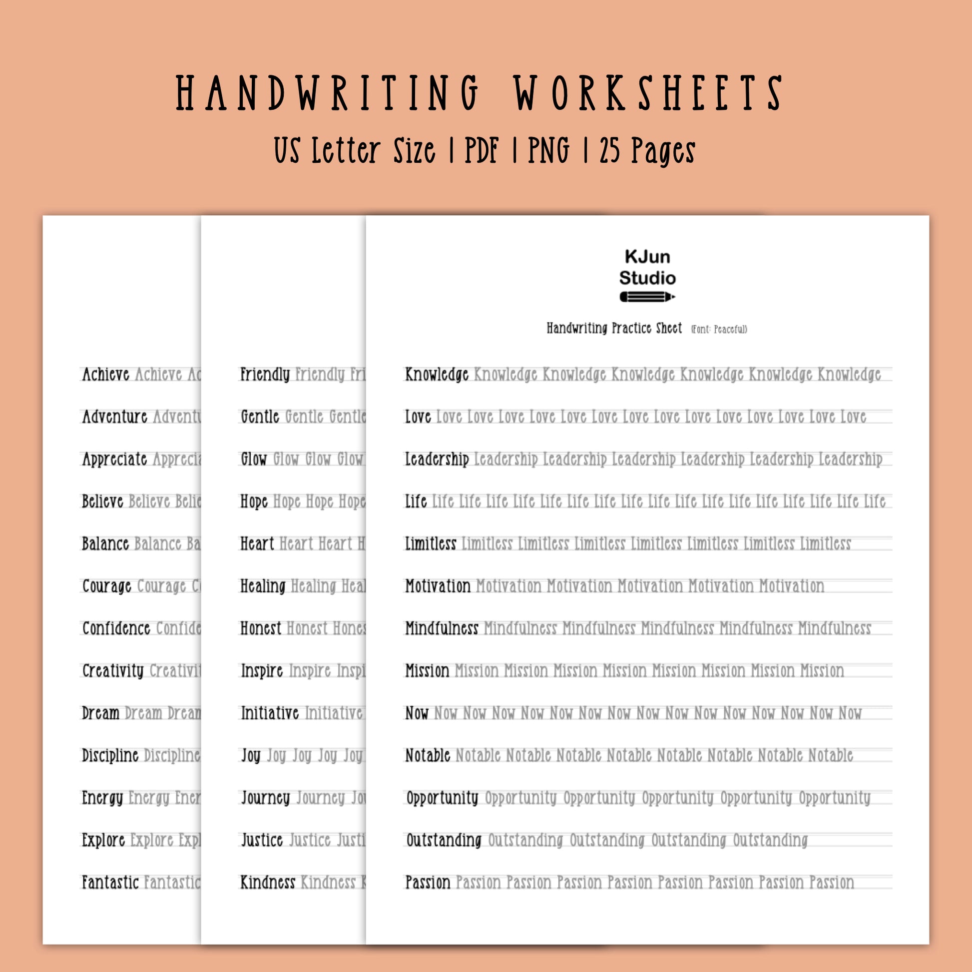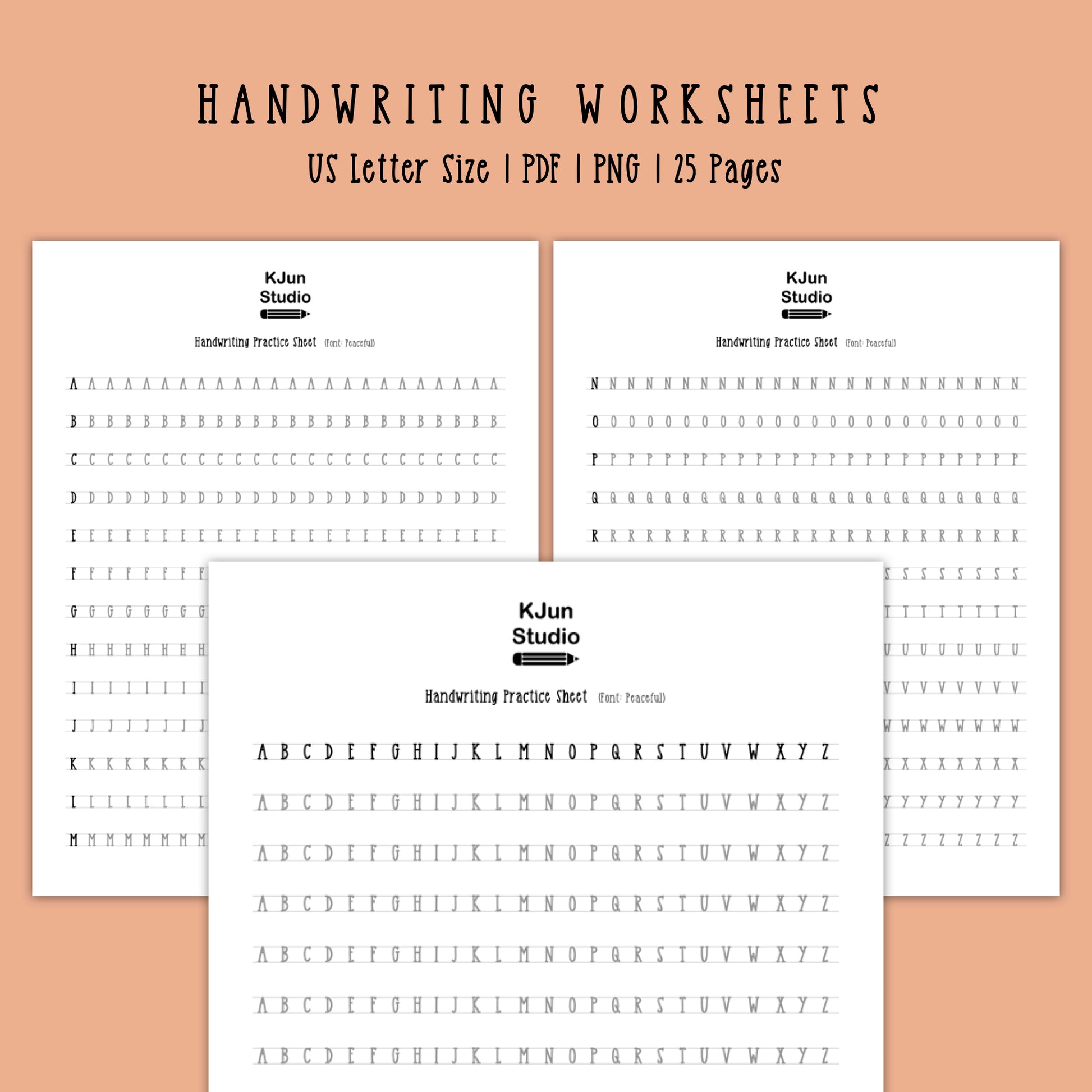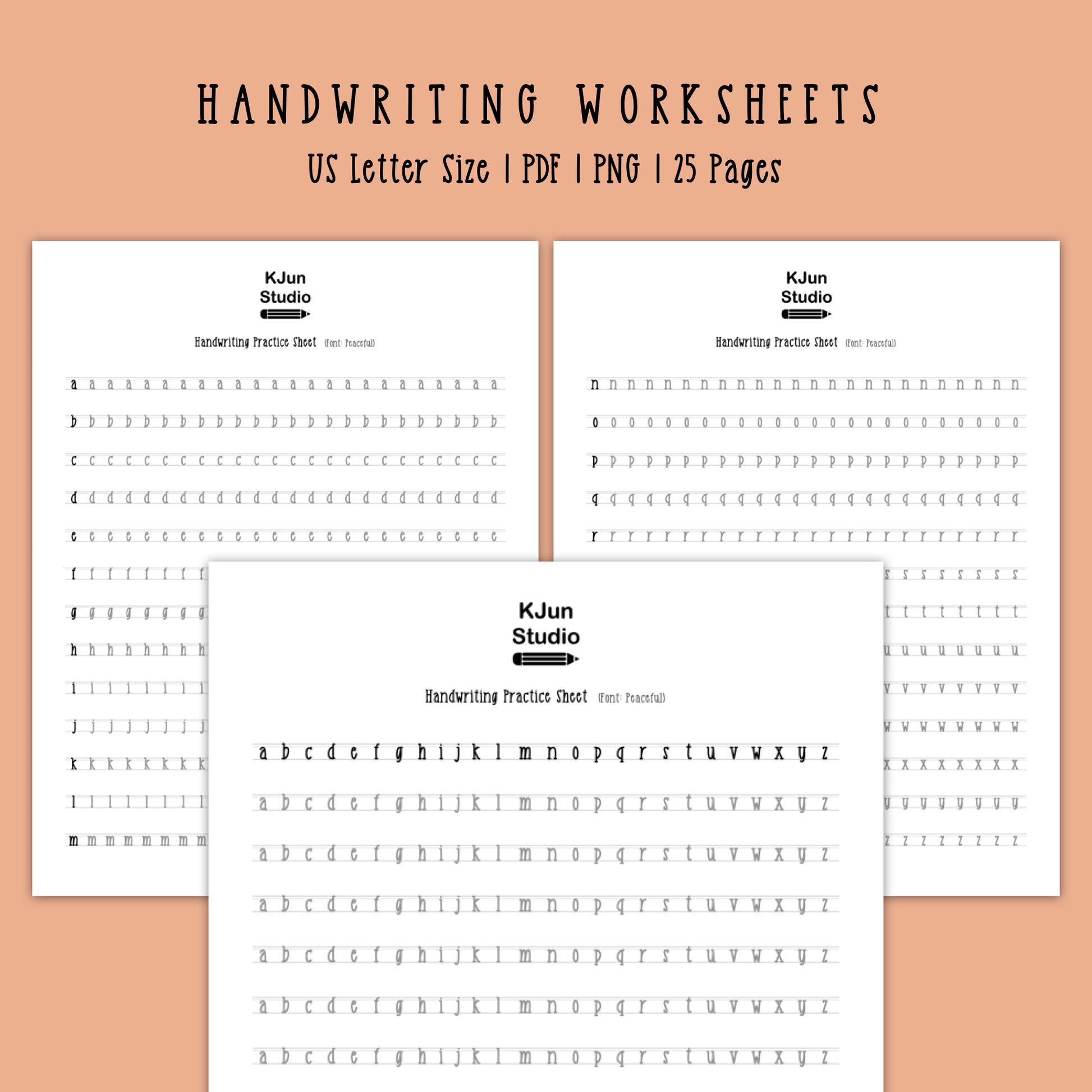 Handwriting Practice Sheets - Peaceful Font