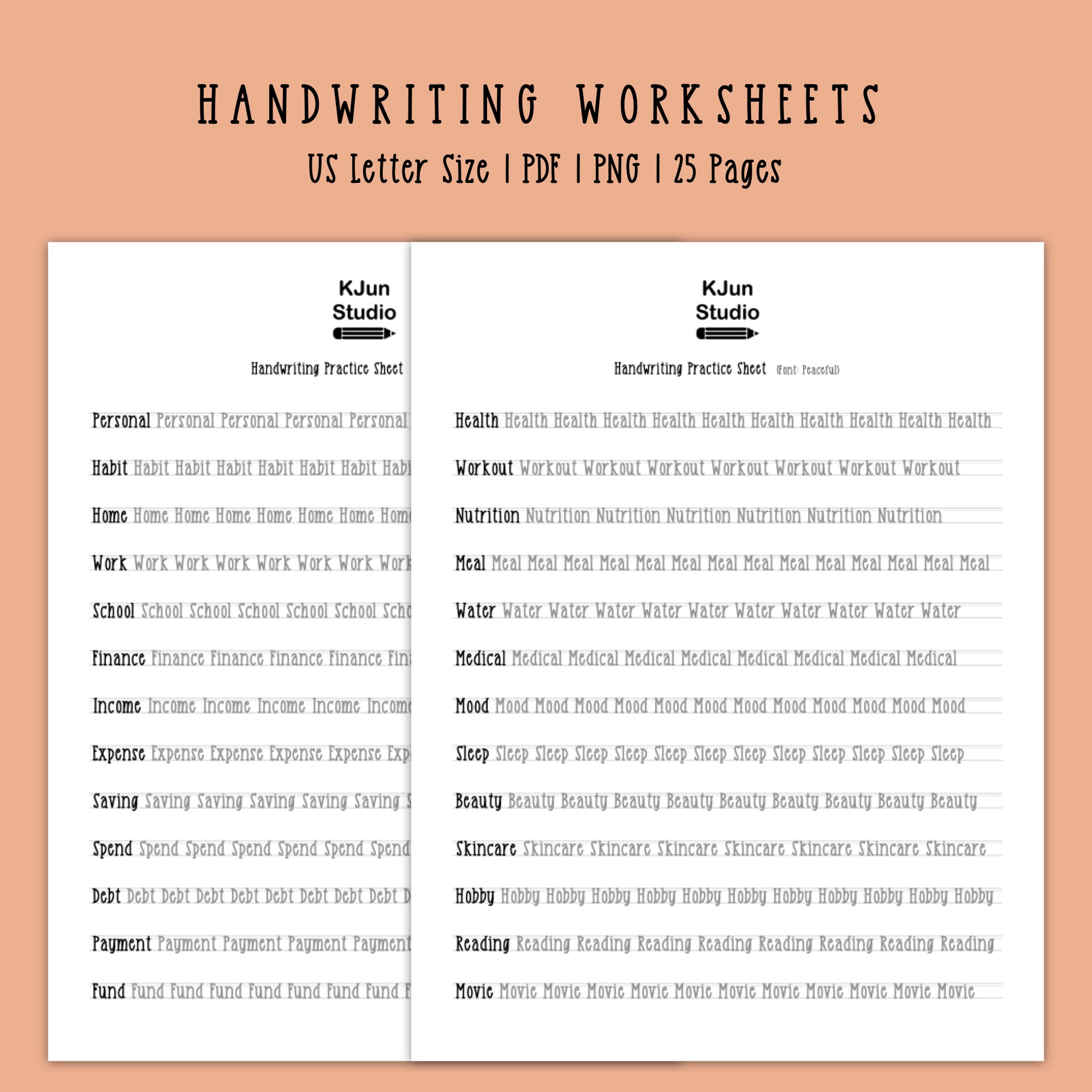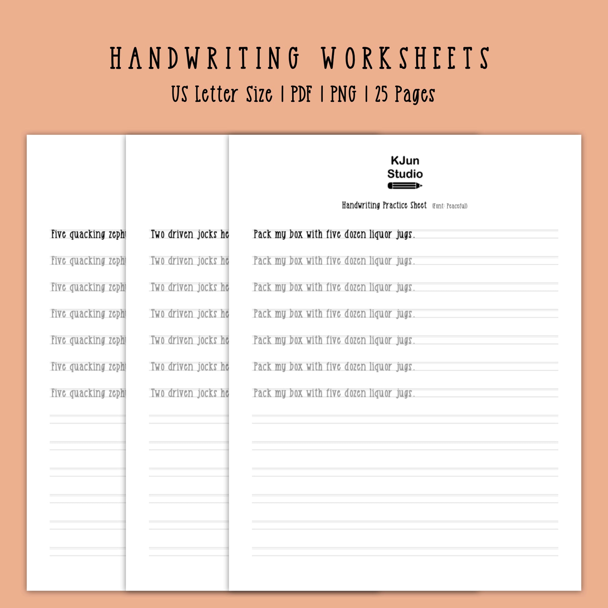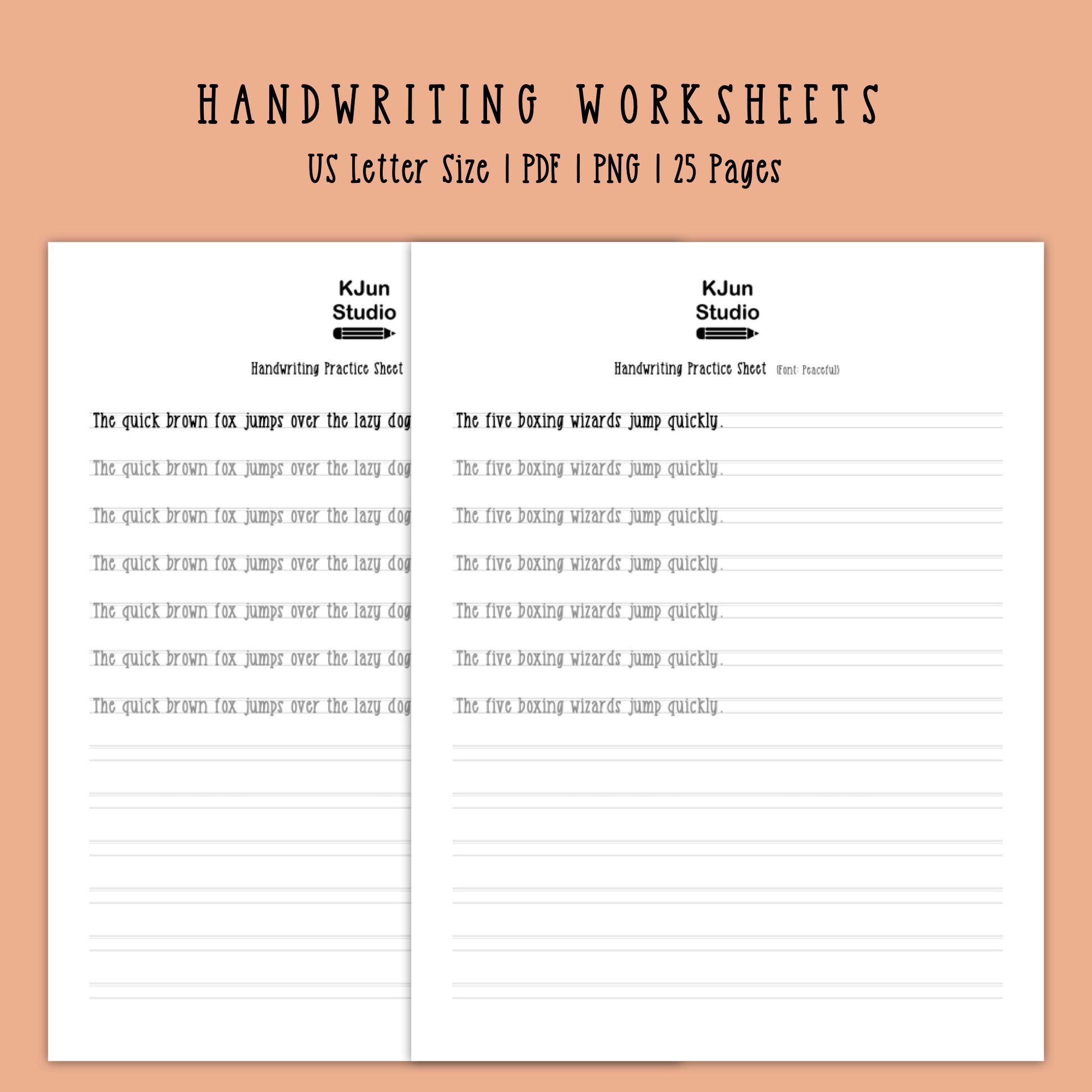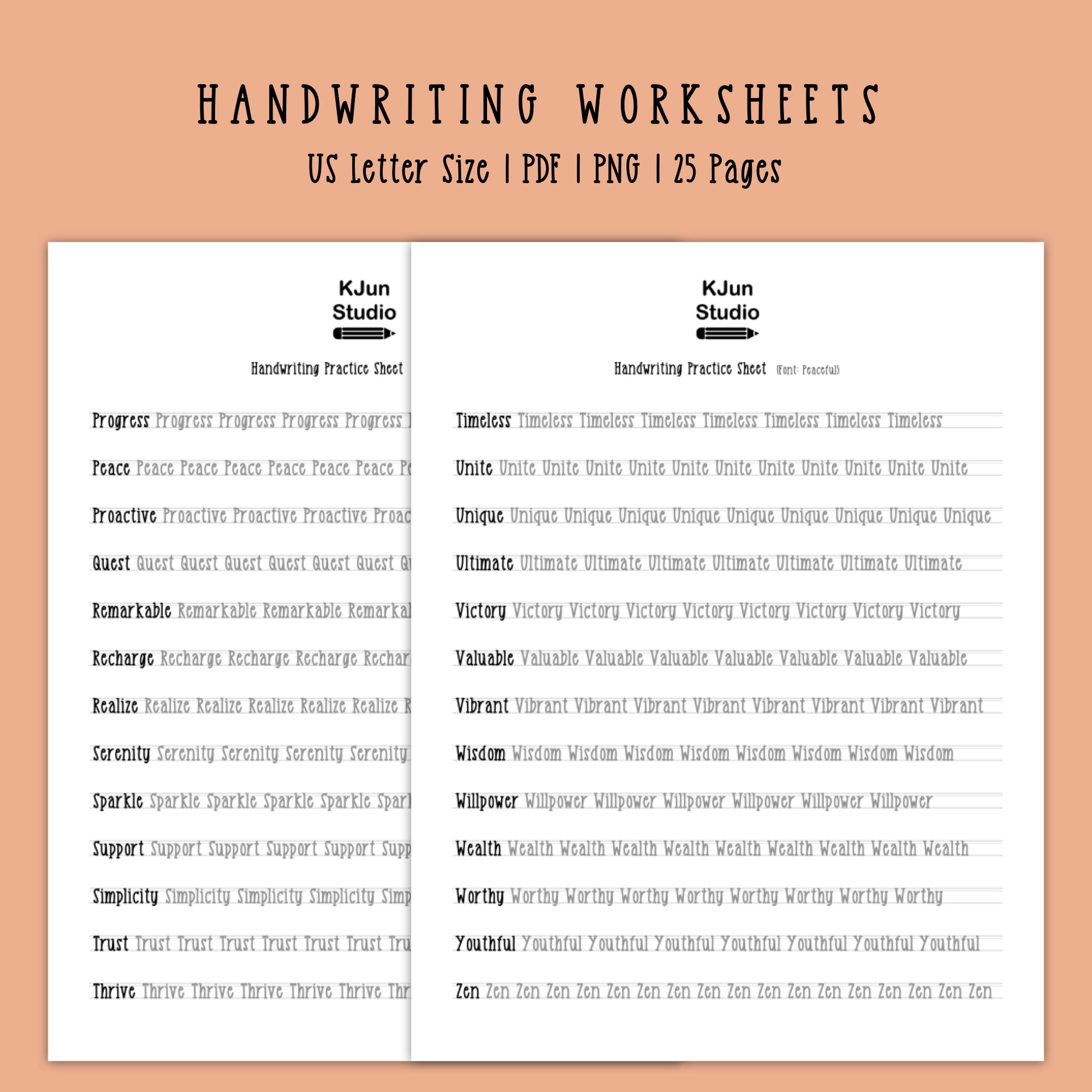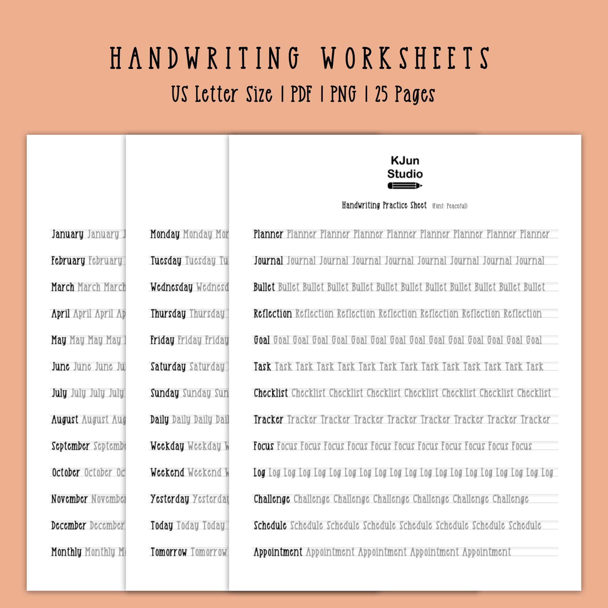 Handwriting Practice Sheets - Peaceful Font