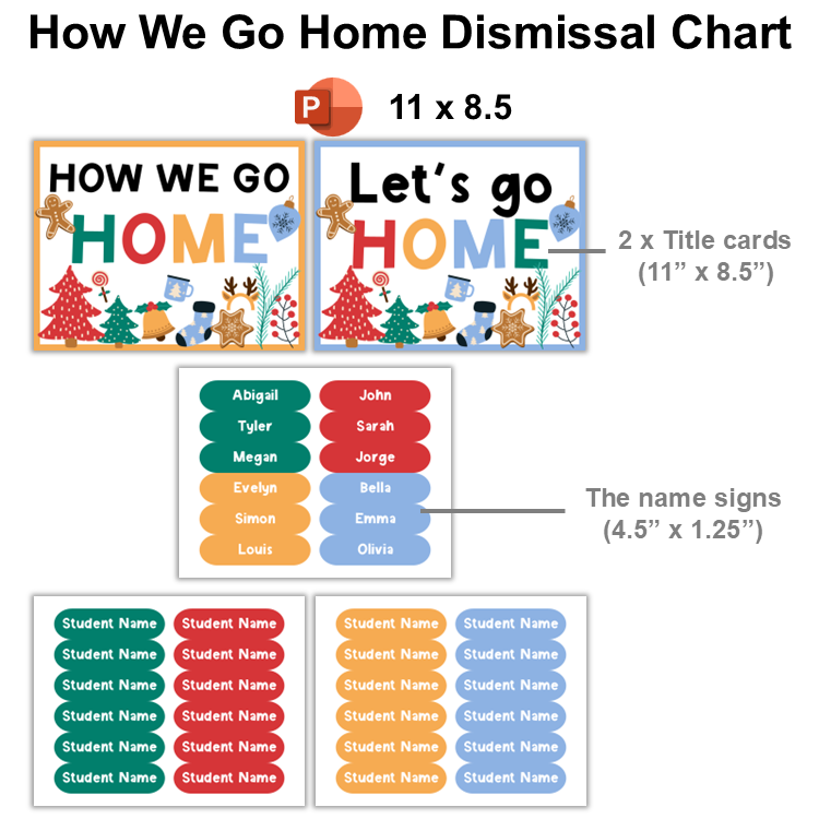 How We Go Home Dismissal Chart - Bright Christmas | Editable