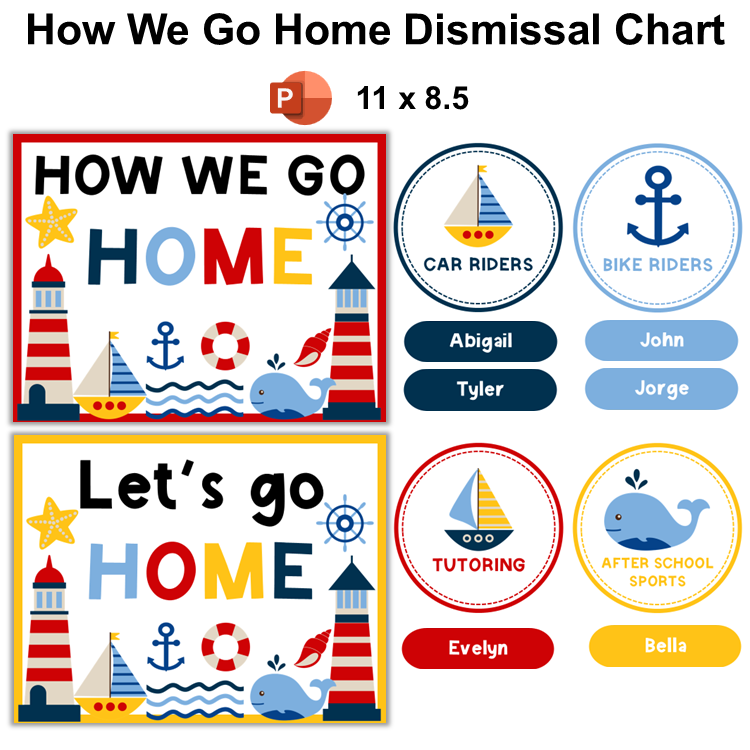 This listing is for an editable template of How We Go Home Dismissal Chart with Nautical Theme.