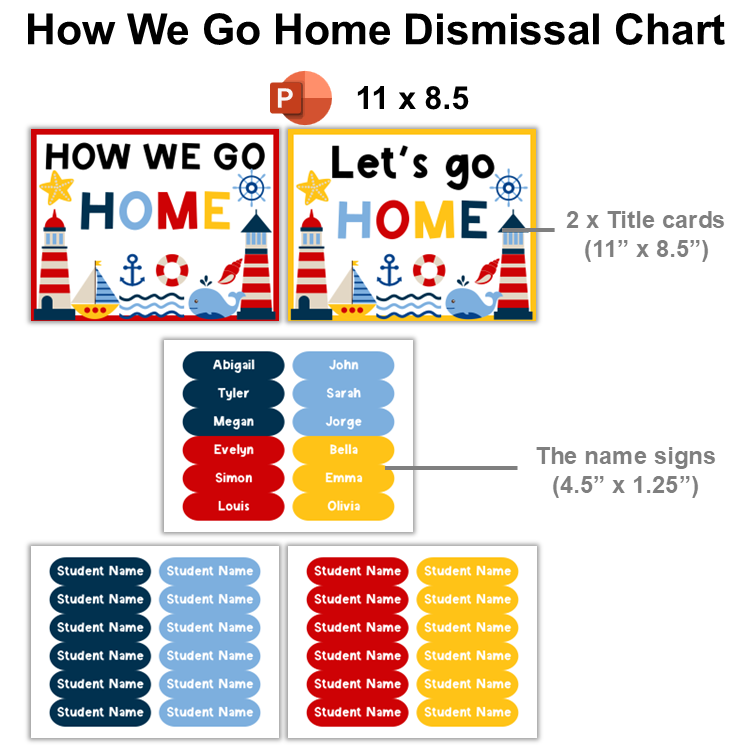 • 1 PowerPoint file containing an editable template of How We Go Home Dismissal Chart (11 Pages).