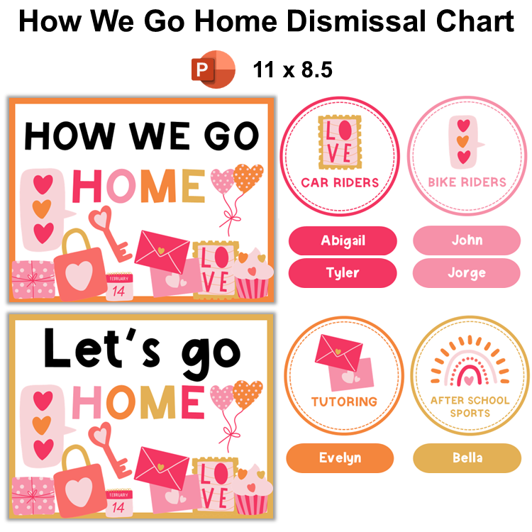 How We Go Home Dismissal Chart - Pink Valentine | Editable