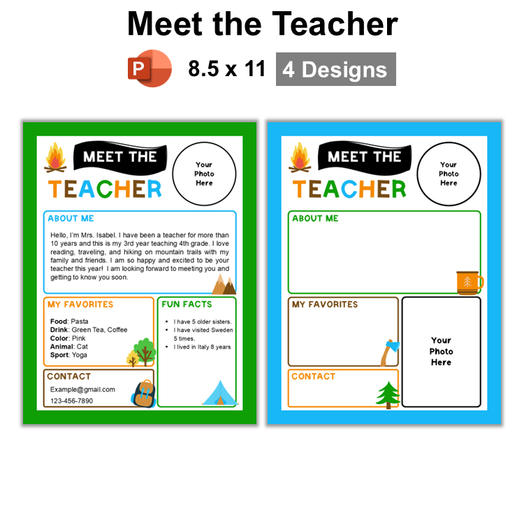 This listing is for an editable template of meet the teacher with Camping Theme.