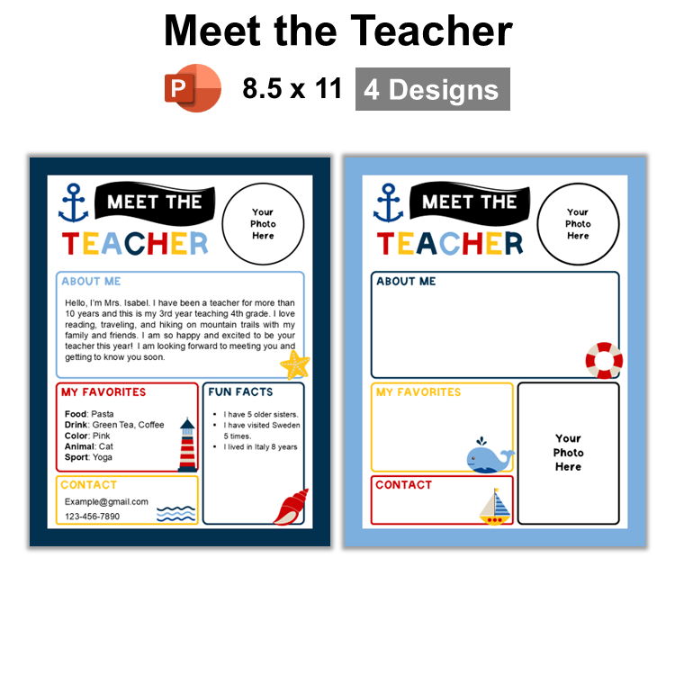 • 1 PowerPoint file containing 4 meet the teacher templates (4 Pages).