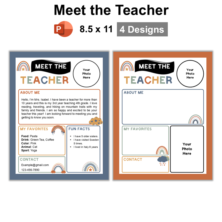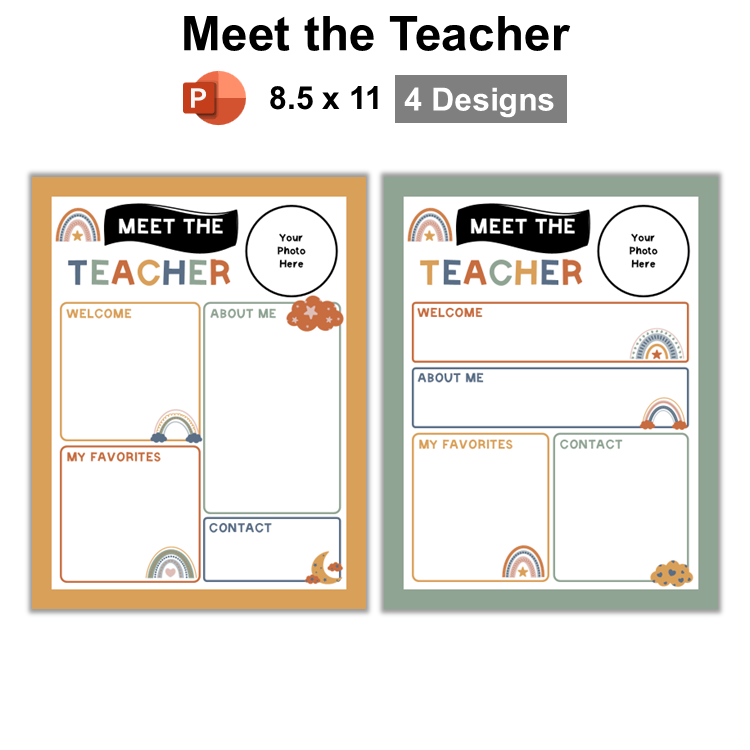 • 1 PowerPoint file containing 4 meet the teacher templates (4 Pages).